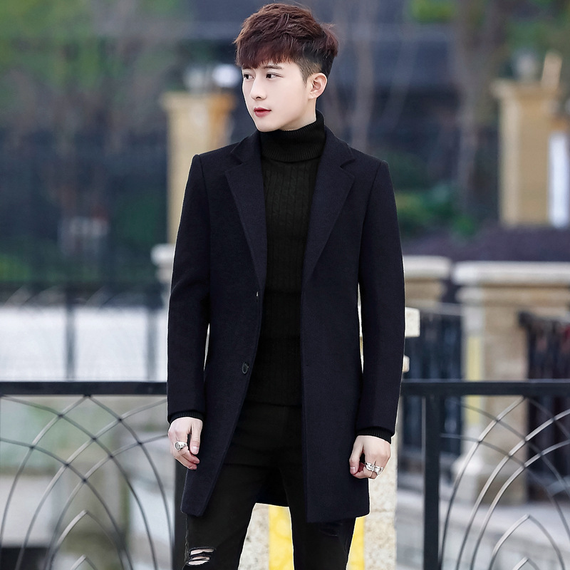 男性のラシャのコート韓国版秋冬の青年の中で長いタイプの毛はコートの2024新型のファッションの紳士服です。