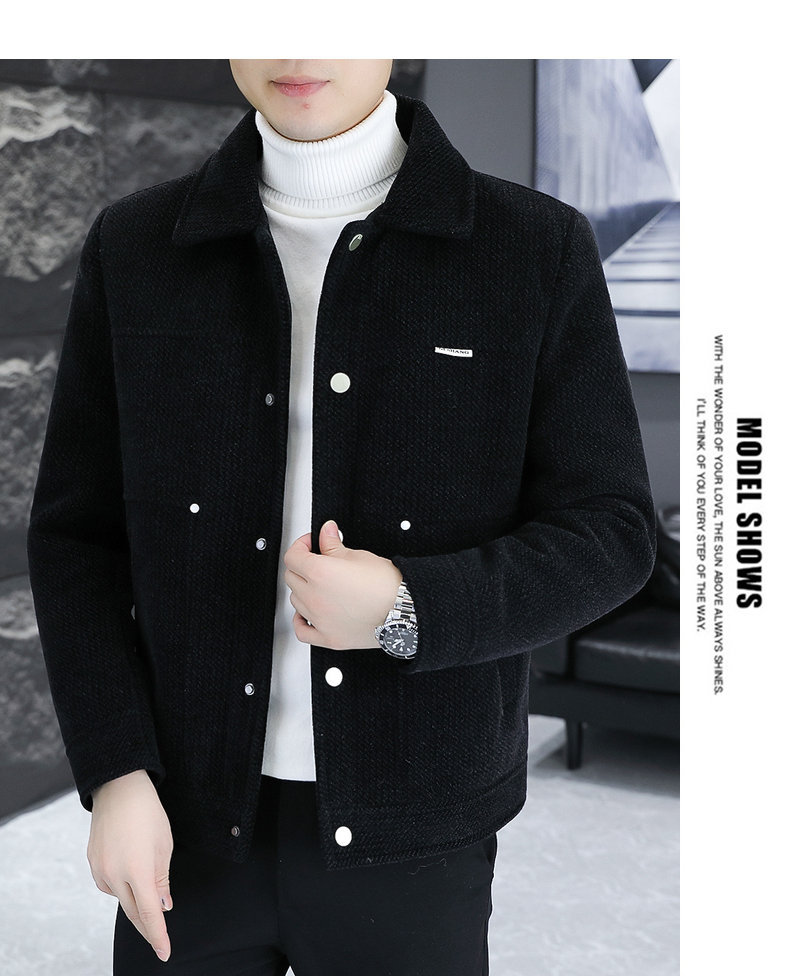 男士加绒加厚翻领夹克2025秋冬新款男装青年时尚休闲保暖百搭外套