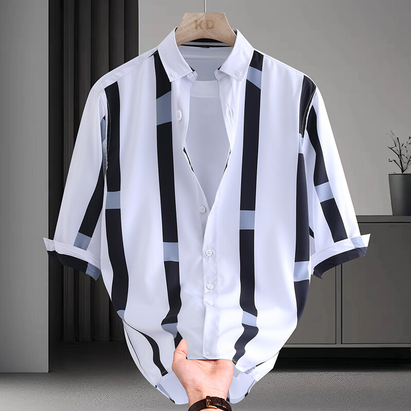 メンズストライプ半袖シャツ 2025 夏の新作紳士服若者ファッションカジュアルトレンド多用途シャツ