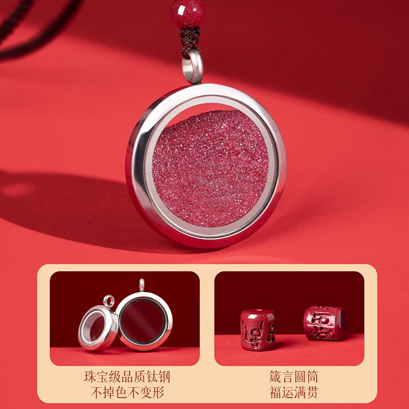 朱砂吊坠女装朱砂的空心瓶真粉圆形嘎乌盒挂件护身符男挂件可打开