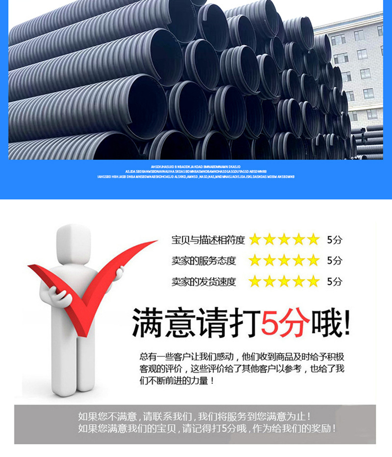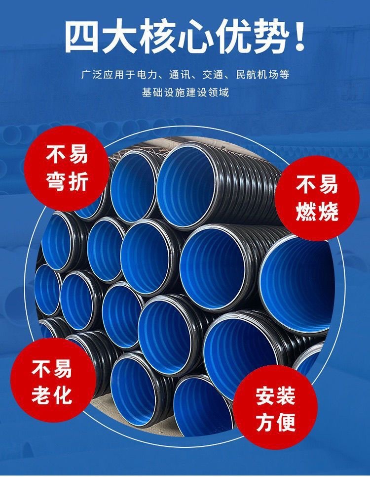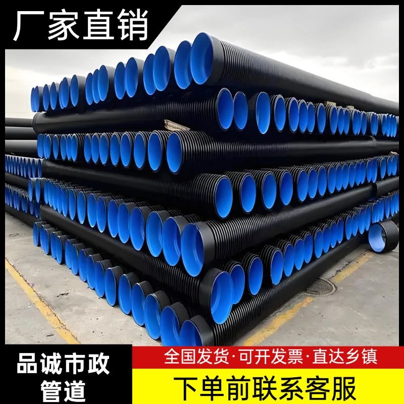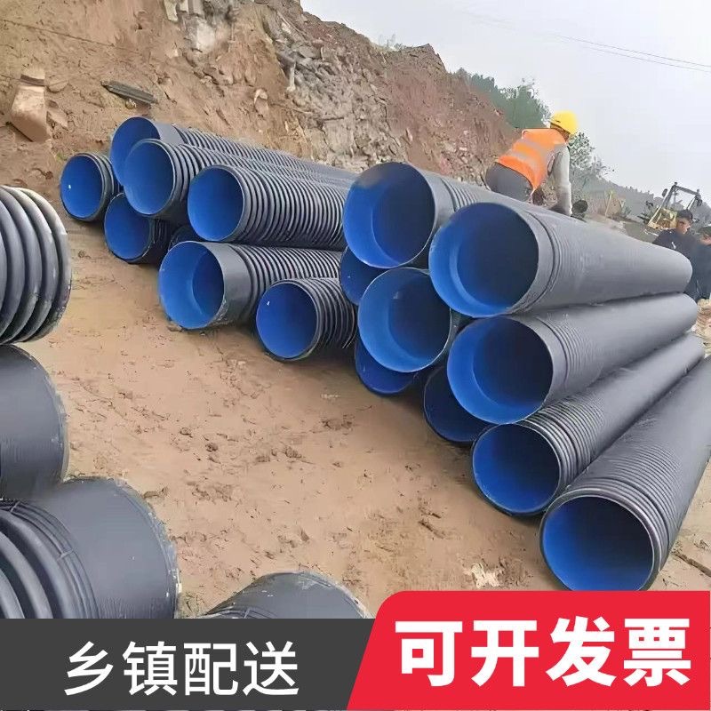 运驰HDPE双壁波纹管市政聚乙烯钢带增强排水管 中空缠绕管排污管
