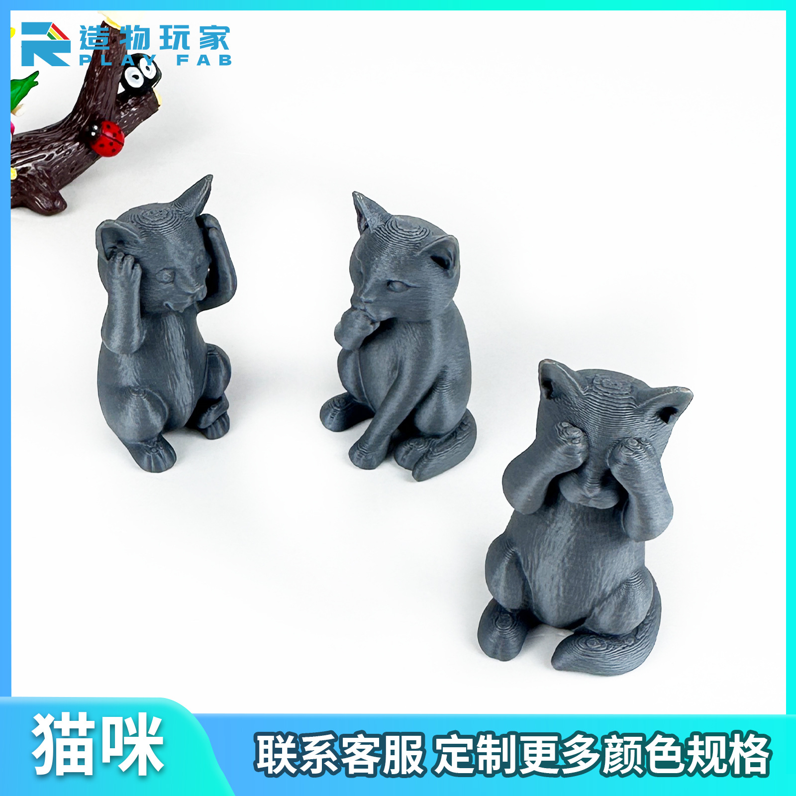 跨境三只聪明猫不听不说不看造型小猫塑料摆件桌面小雕像创意摆件