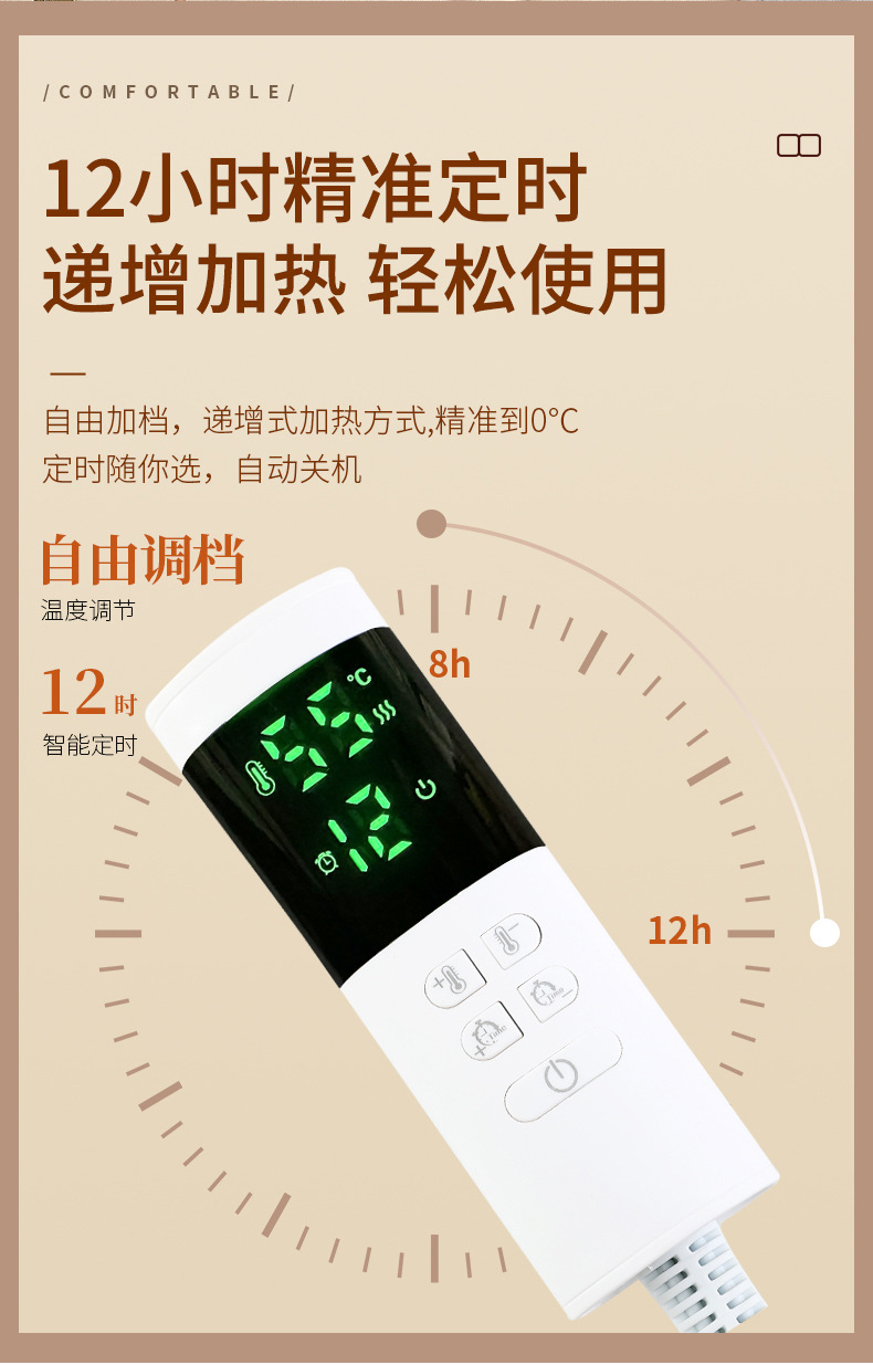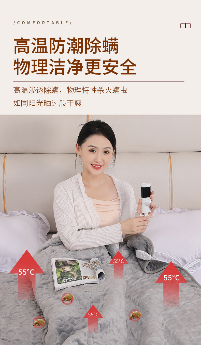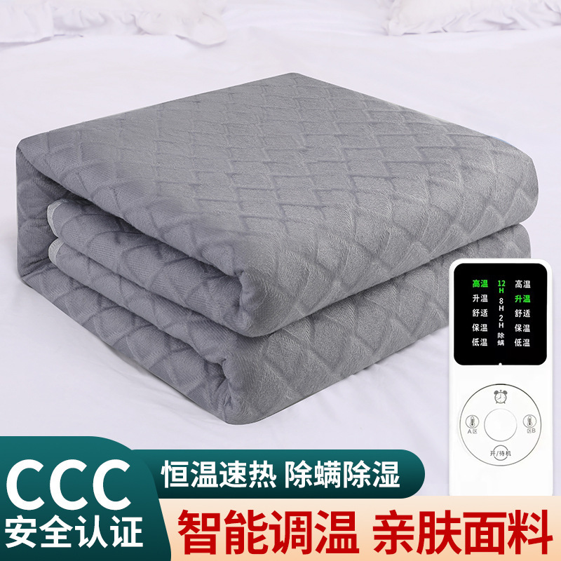 批发双面法兰绒电热毯智能多档调温电热毯可拆卸防水透气加热盖毯
