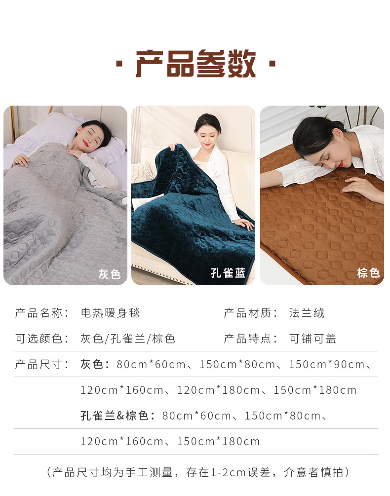 工厂批发可水洗电加热盖毯冬季加厚保暖可铺可躺盖腿护膝毯加热毯