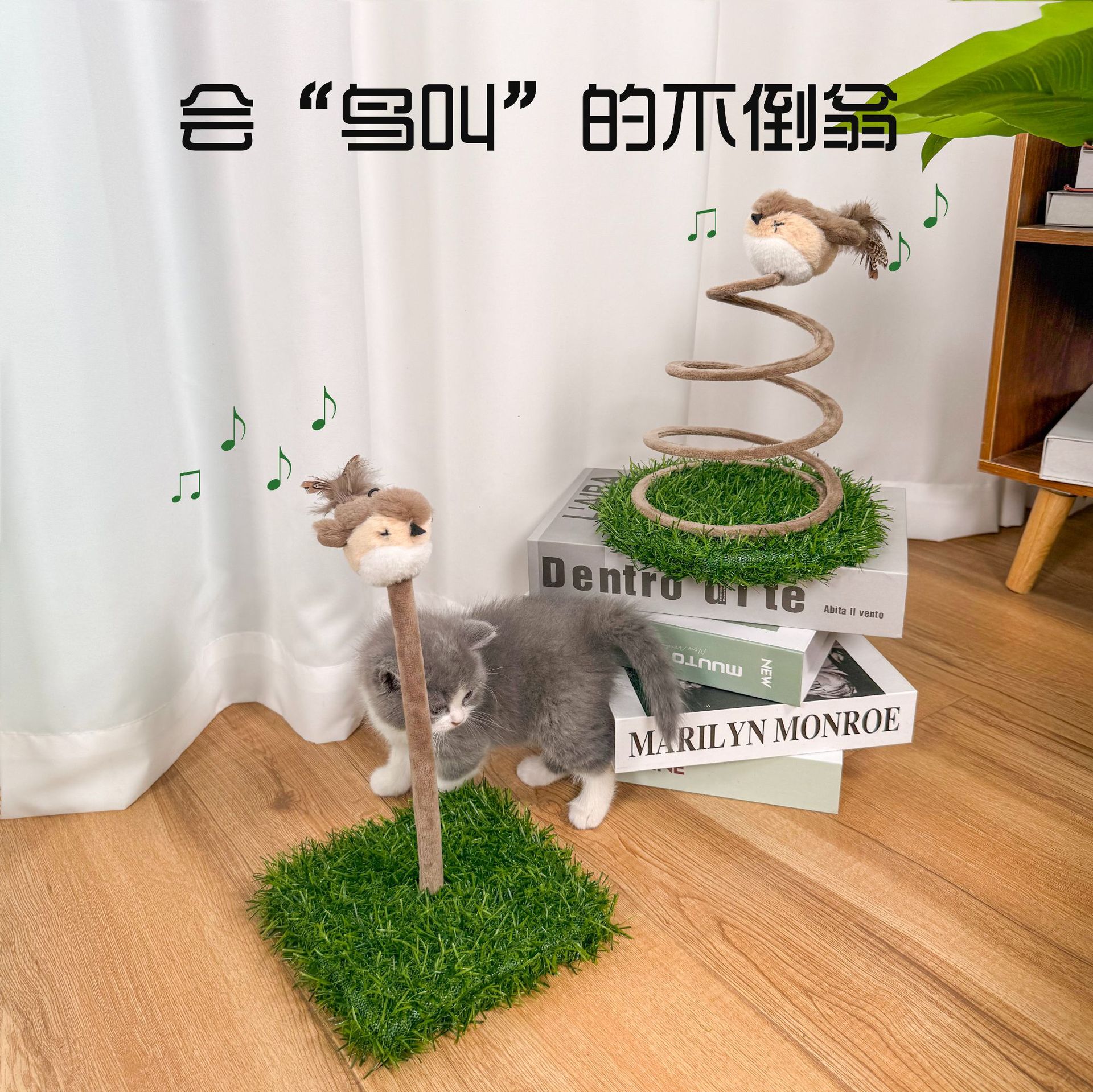 森のテーマスプリングタンブラーサウンディングバード芝生猫スクラッチボードおもちゃストレートスプリングカーブスプリング小型ペット用品