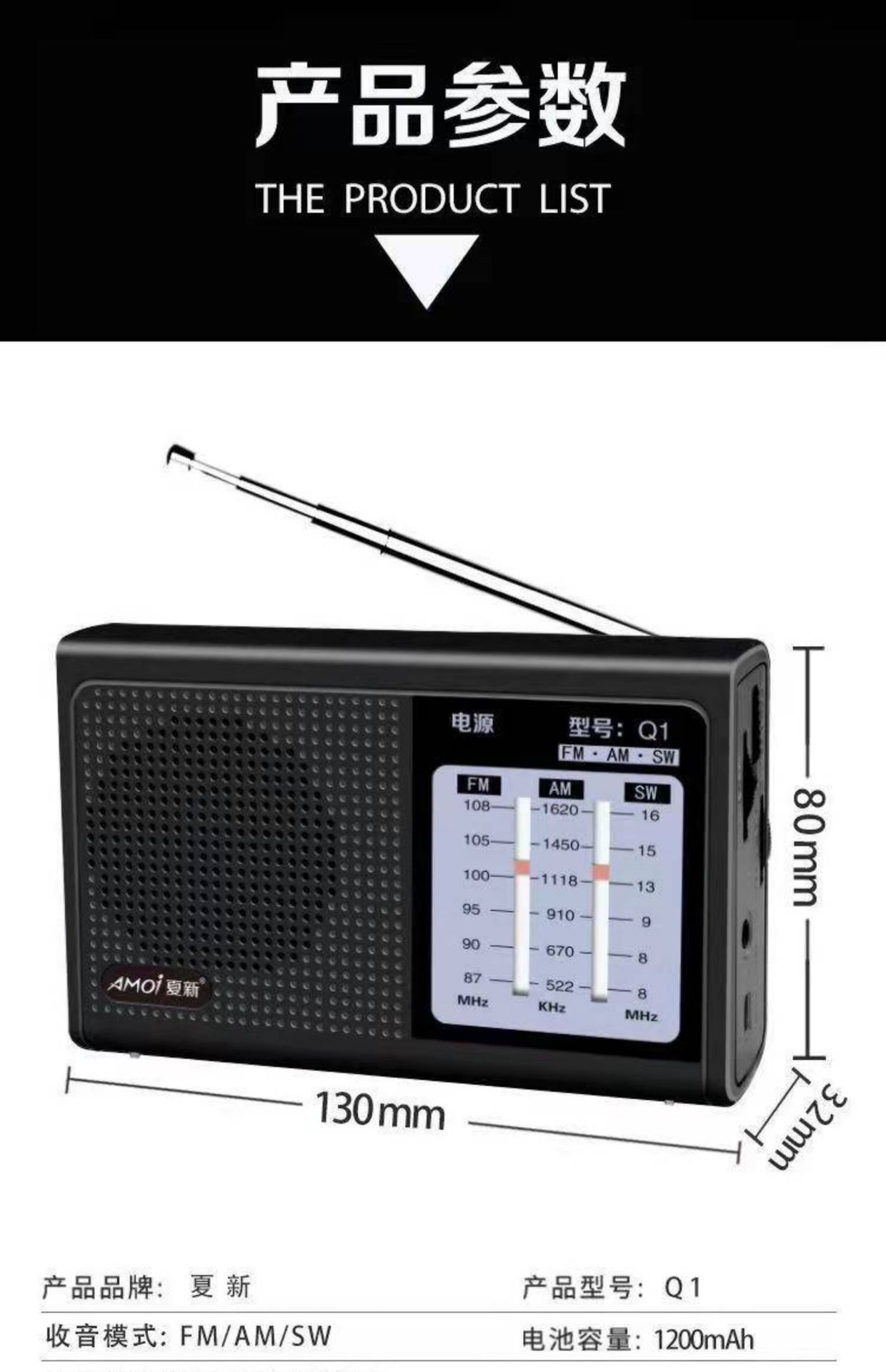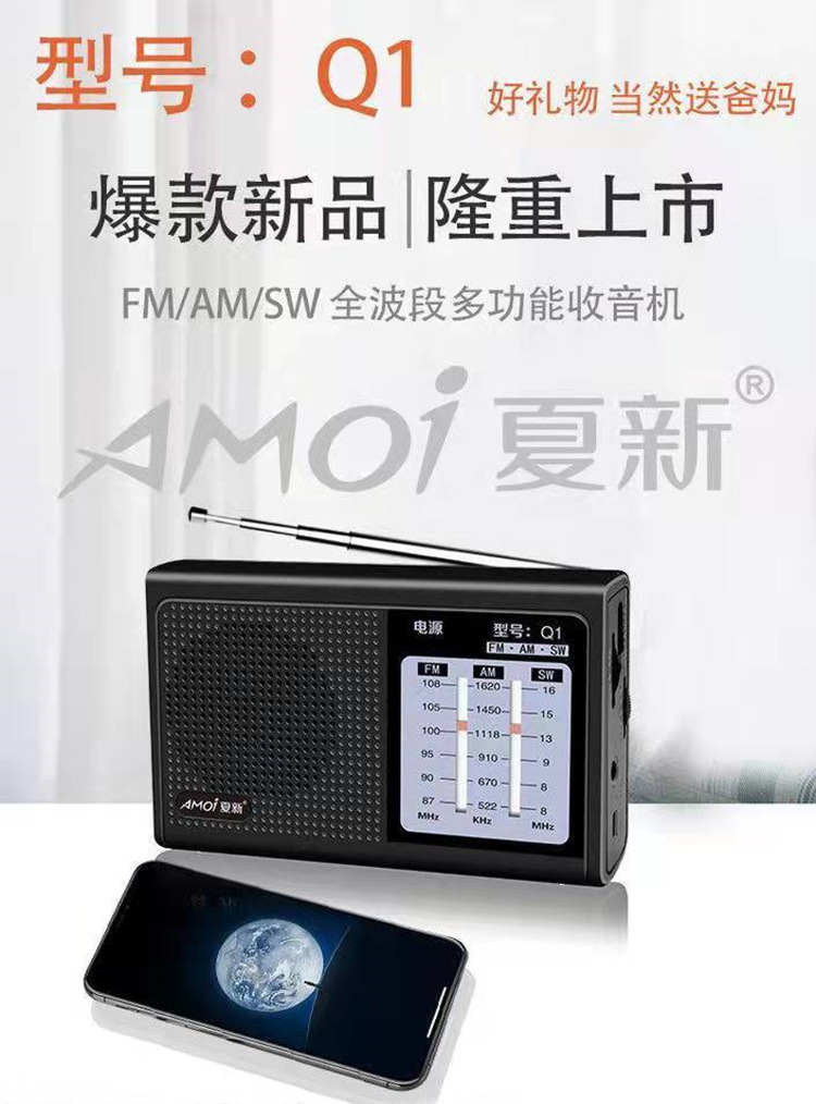 老人卫星调频广播半导体款可充电批发全波段收音机