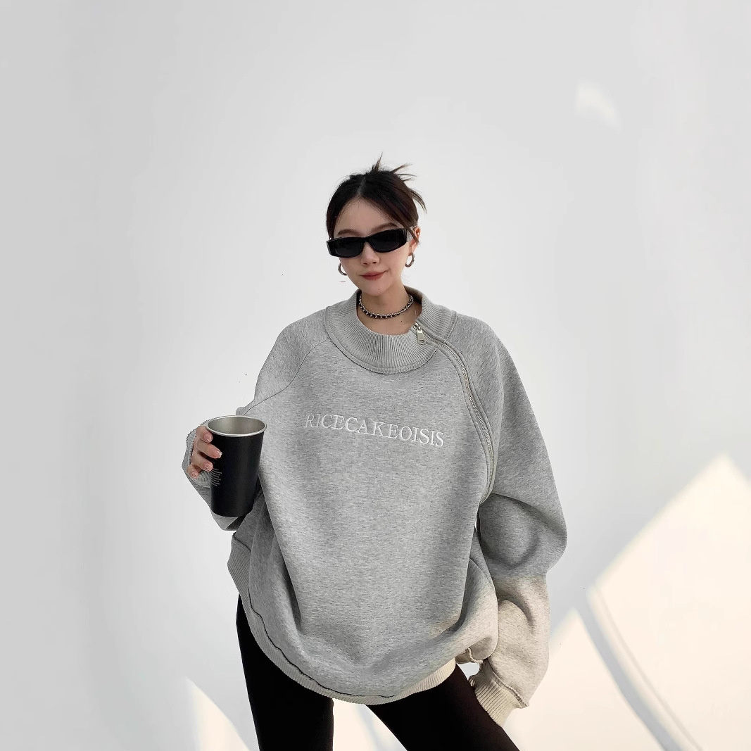 秋冬重ポンド400gアメリカ複合加毛小衆Cleanfit刺繍純色ショートファスナー丸首スウェット