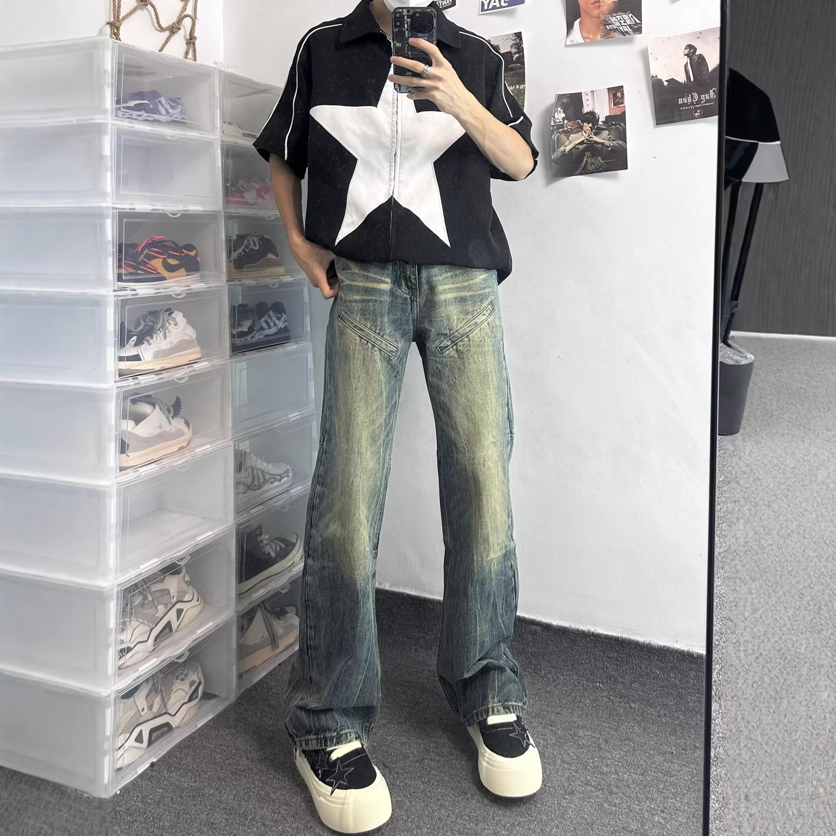 アメリカの水洗いレトロなカジュアルジーンズを作ります。