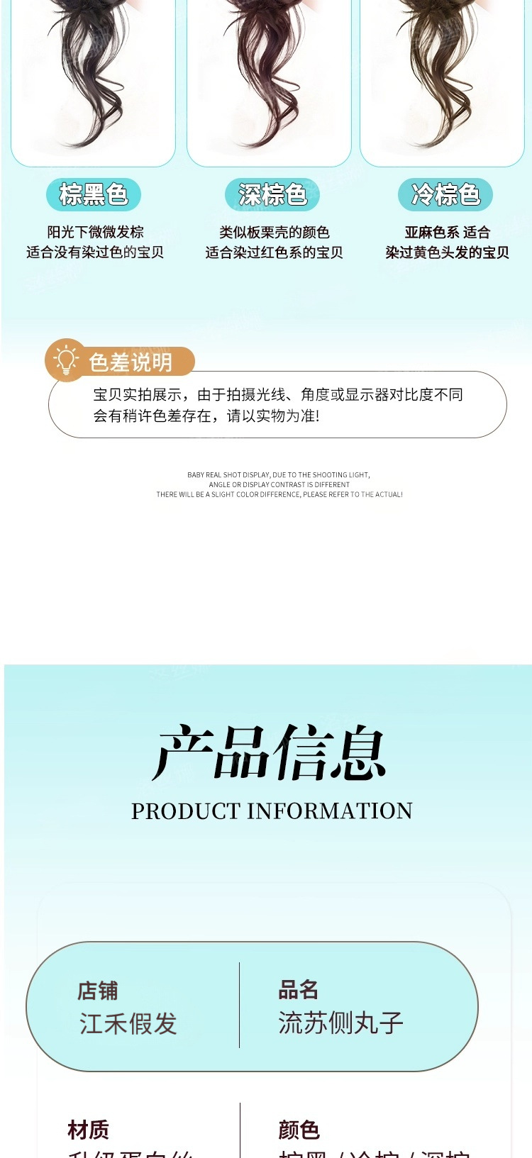 颜色 流苏侧丸子头【棕黑色】,流苏侧丸子头【自然黑】,流苏侧丸子头【深棕色】,流苏侧丸子头【浅棕色】