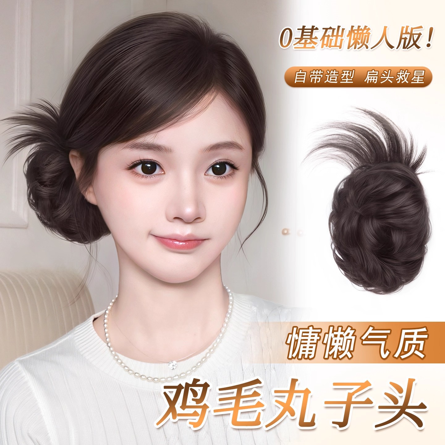 丸子头假发抓夹慵懒感鸡毛花苞盘发自然蓬松后脑勺增发量发圈丸子
