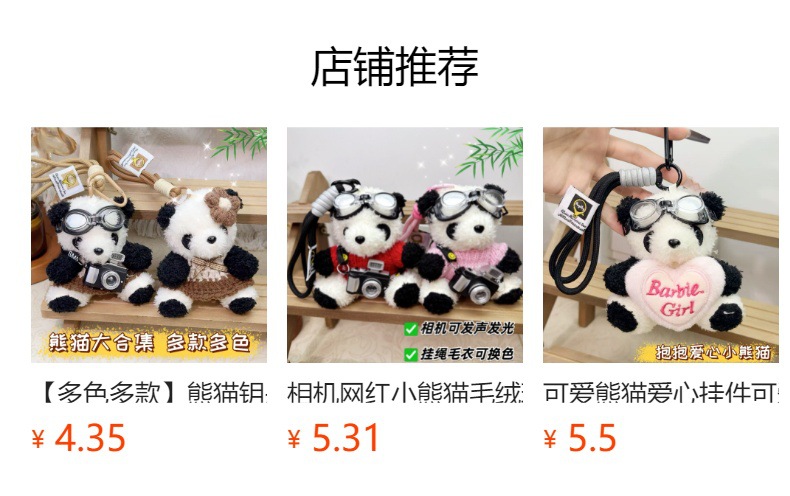 网红可爱花花熊猫毛绒挂件小熊玩偶公仔包包挂饰钥匙扣礼物纪念品