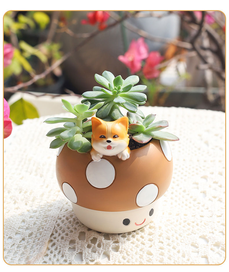 卡通蘑菇小兔柯基趣味园艺树脂花盆创意工位桌面多肉盆栽装饰花盆