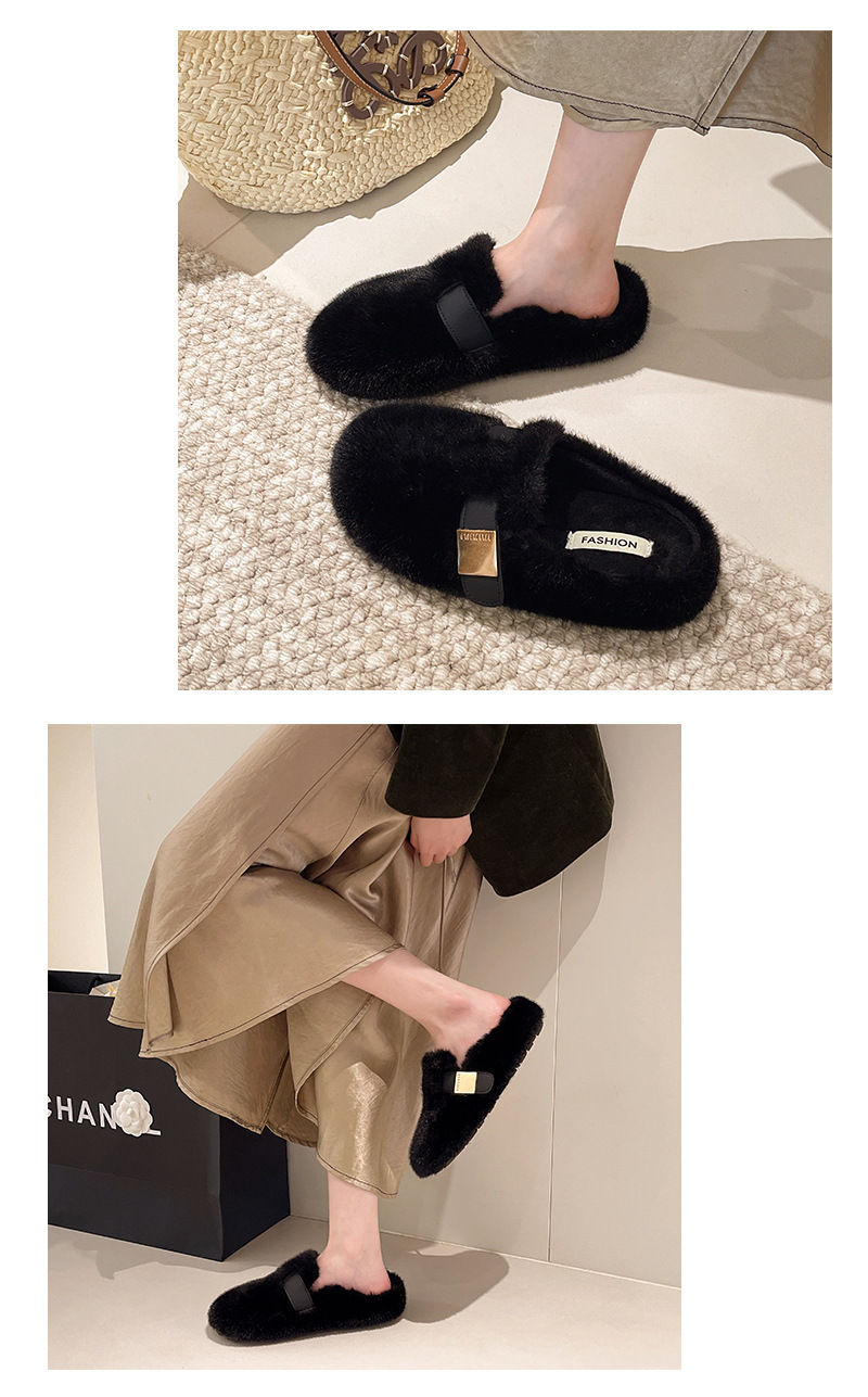 厚底毛皮のようなスリッパ女性のアウターウェア 2025 秋と冬の新しいプラットフォームハーフスリッパハイエンド包頭綿の靴女性のための