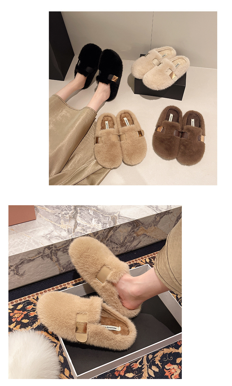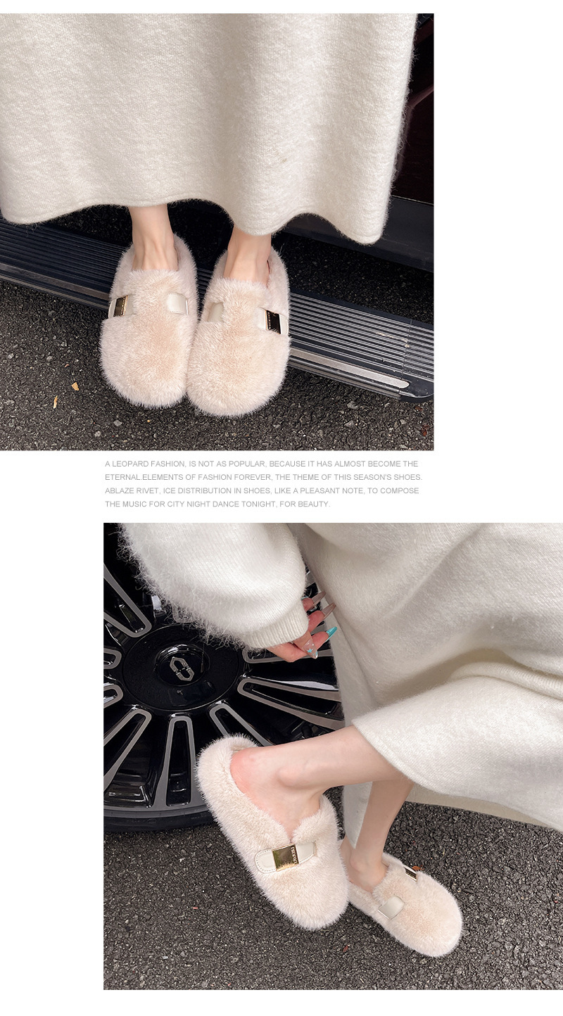 平底包头毛毛拖鞋女外穿2025新款秋冬高级感一脚蹬毛绒棉拖鞋