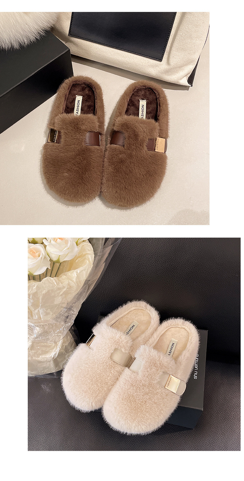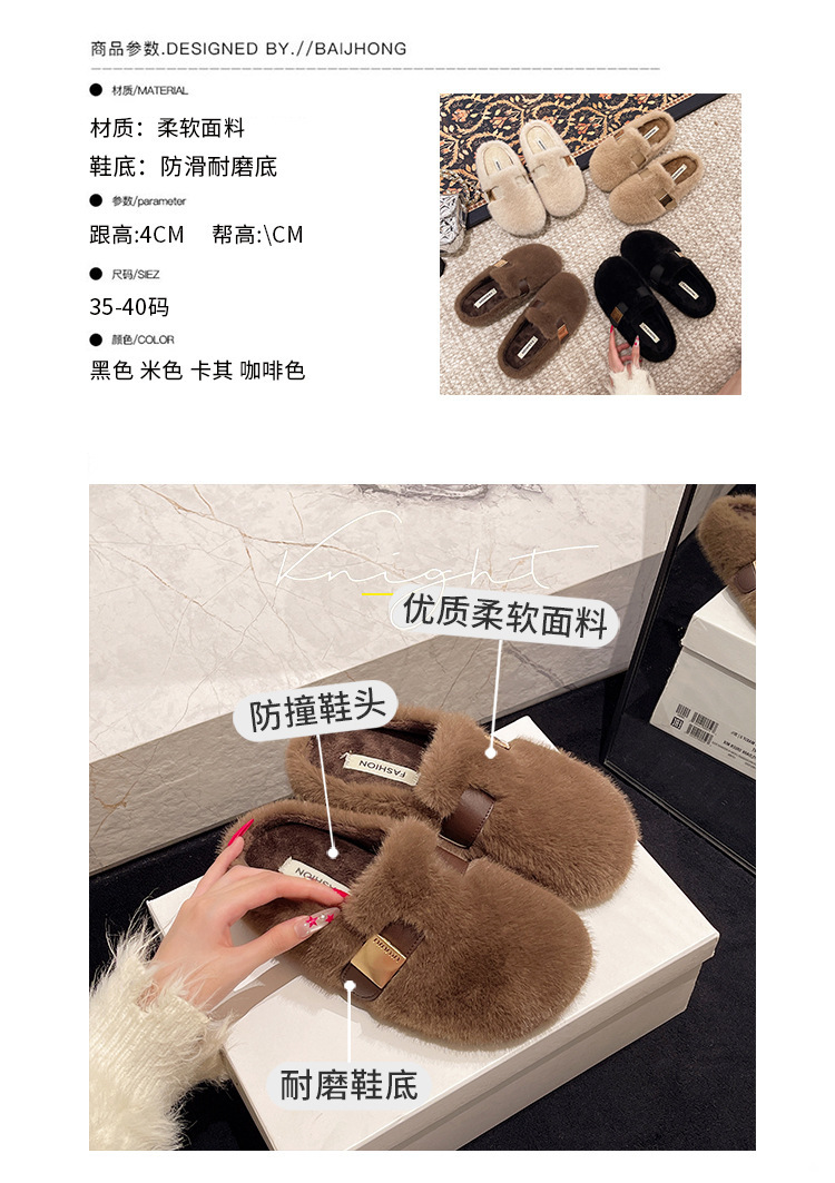 2025年新款秋冬高级感毛绒包头棉拖鞋软底兔毛绒厚底毛毛拖鞋外穿