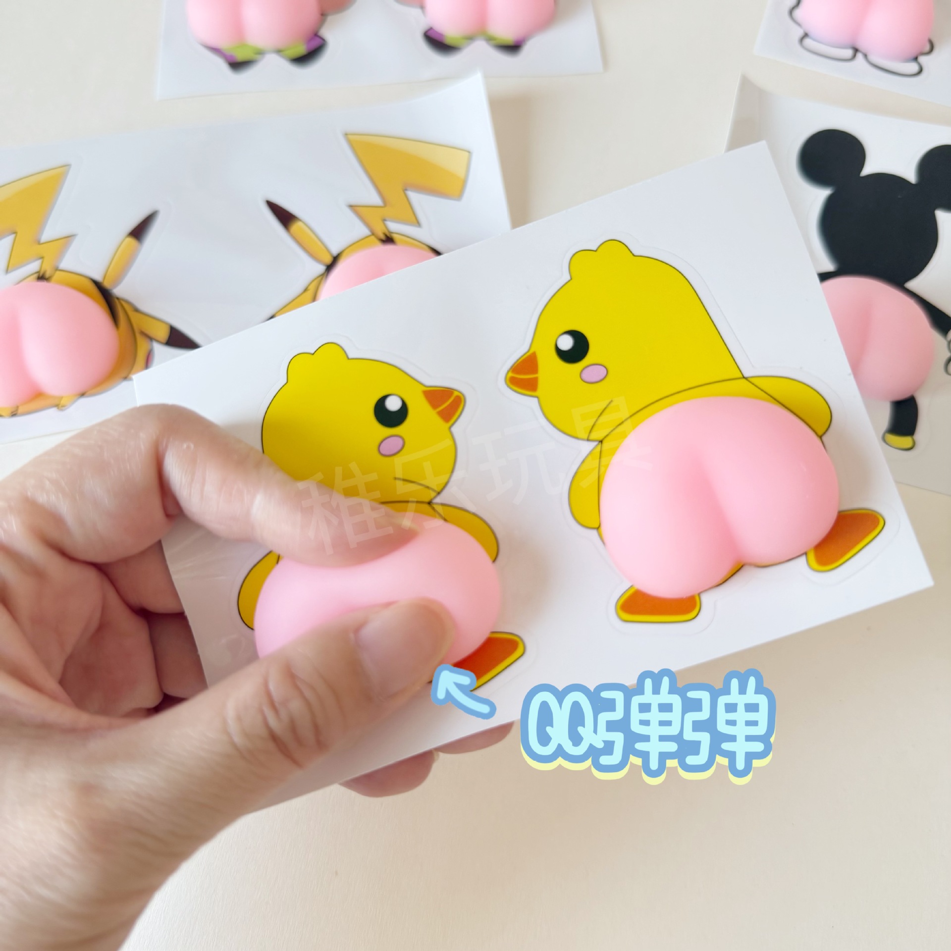 新款搞怪屁屁贴 防刮蹭3D立体屁屁贴纸小学生减压玩具卡通捏捏乐