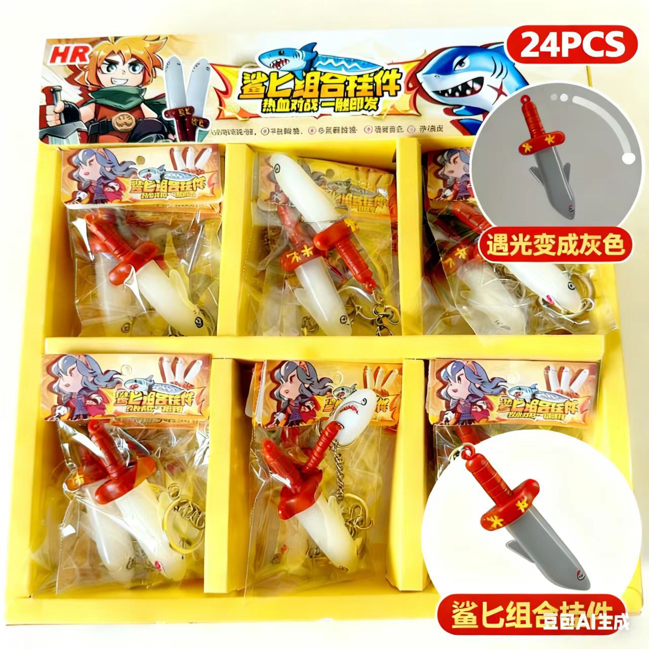 24入鲨匕谐音梗挂件 遇光变色软胶钥匙扣小学生书包挂饰搞怪玩具