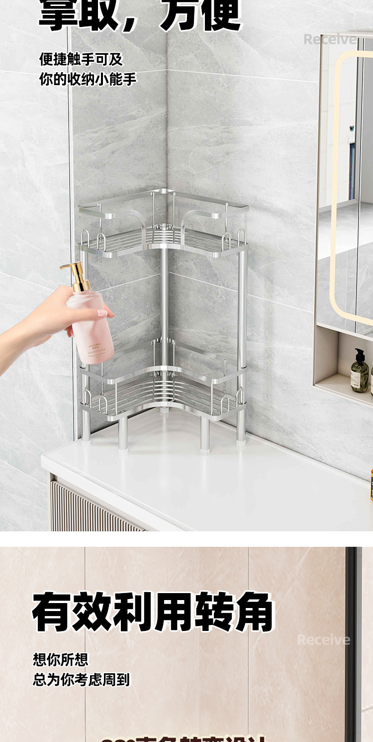 卫生间置物架转角三脚收纳神器沐浴露墙角三角架洗漱用品浴室厕所