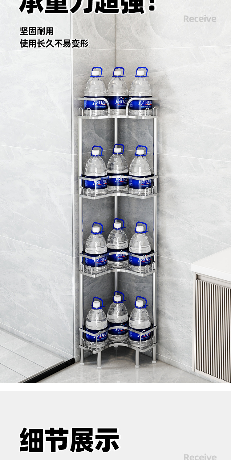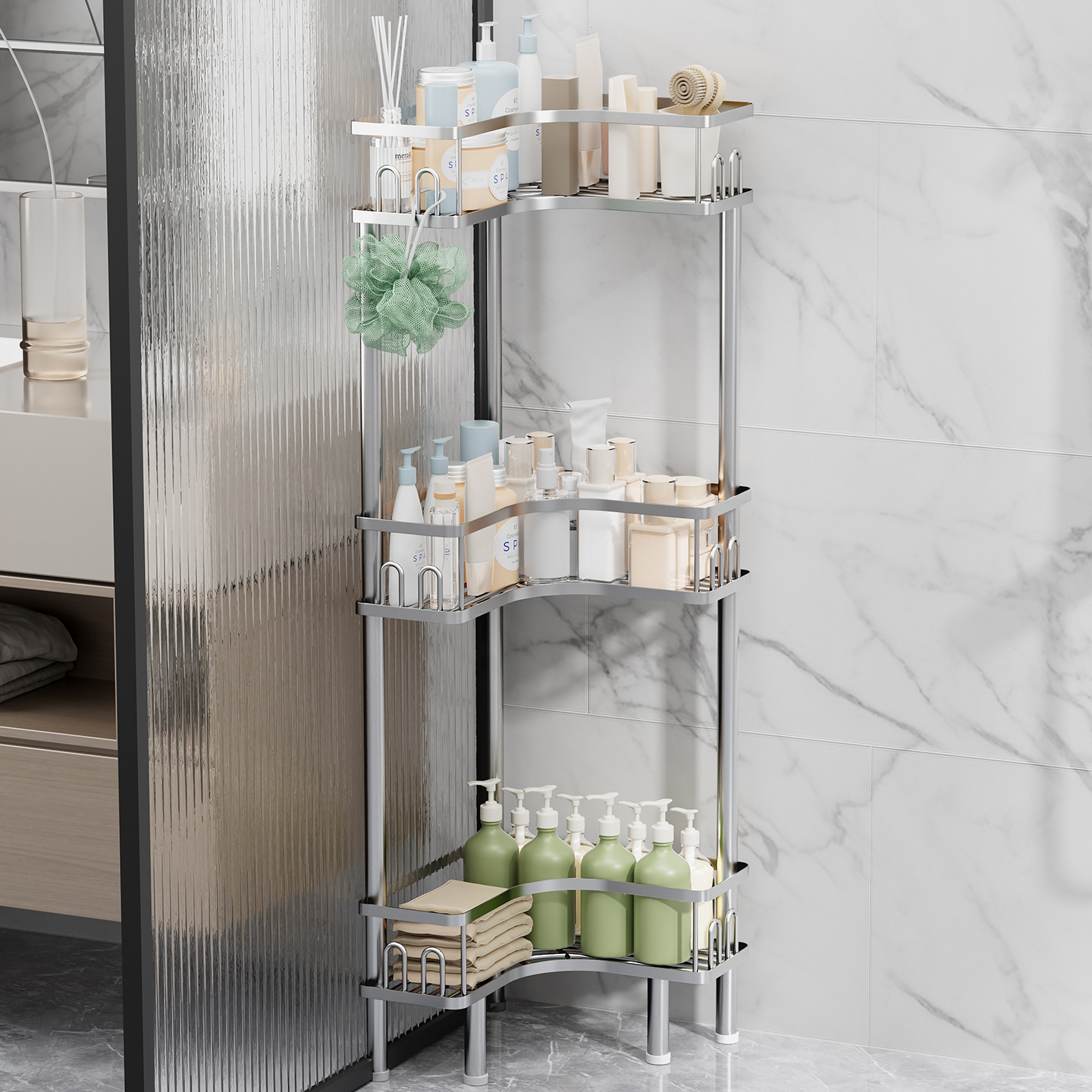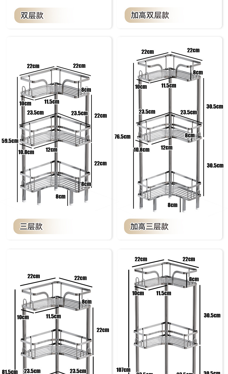 不锈钢卫生间转角收纳三角浴室三脚洗手落地多层墙角置物架沐浴露