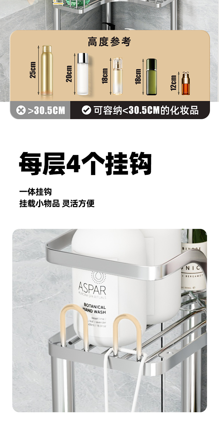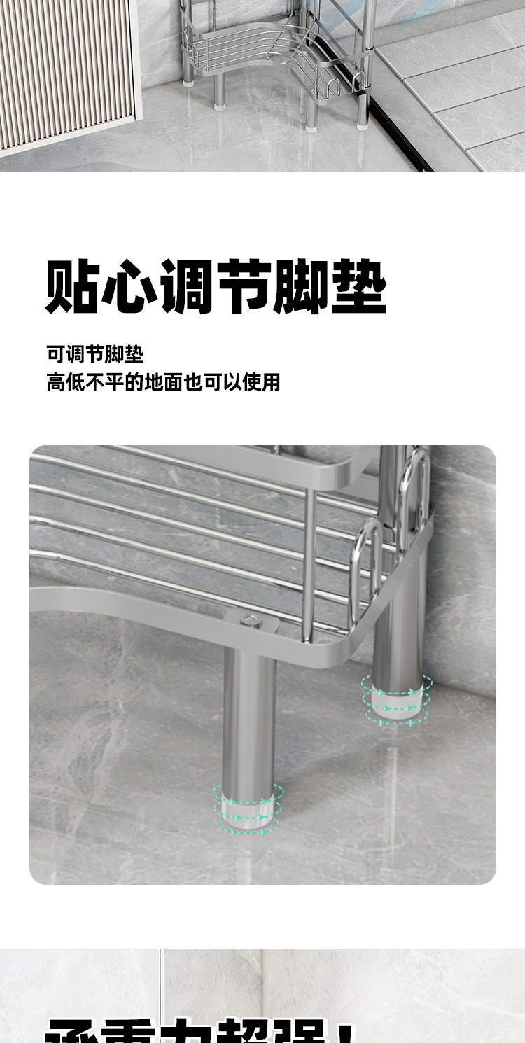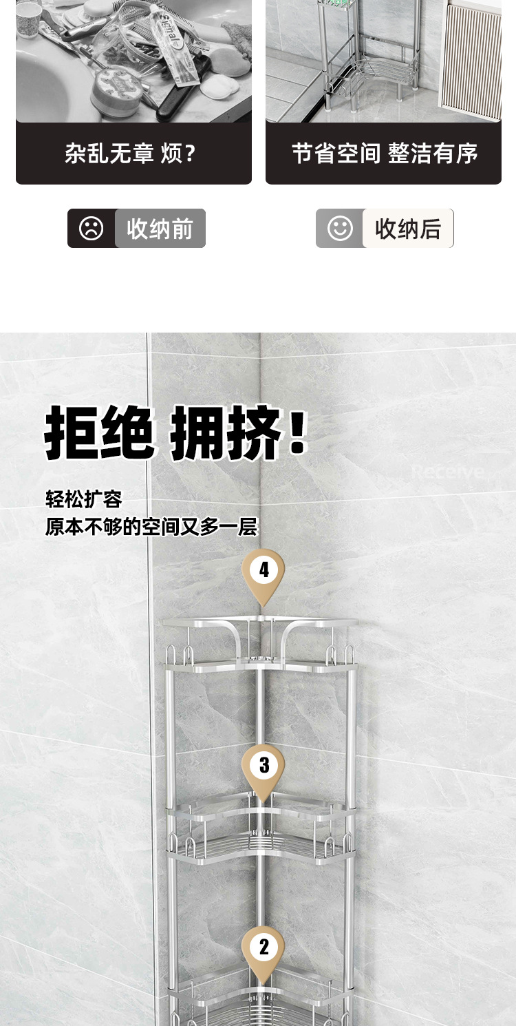 不锈钢卫生间转角收纳三角浴室三脚洗手落地多层墙角置物架沐浴露