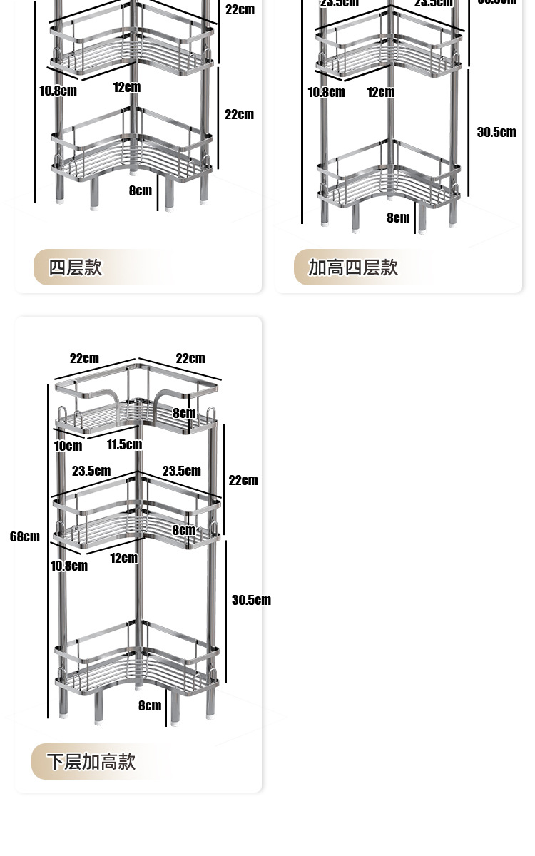 尺寸 不锈钢原色2层(31cm层高),不锈钢黑色2层(31cm层高),不锈钢原色3层(31cm层高),不锈钢黑色3层(31cm层高),不锈钢原色4层(31cm层高),不锈钢黑色4层(31cm层高),不锈钢原色2层(22cm层高),不锈钢黑色2层(22cm层高),不锈钢原色3层(22cm层高),不锈钢黑色3层(22cm层高),不锈钢原色4层(22cm层高),不锈钢黑色4层(22cm层高),不锈钢原色3层(上层22cm下层31cm高),不锈钢黑色3层(上层22cm下层31cm高)