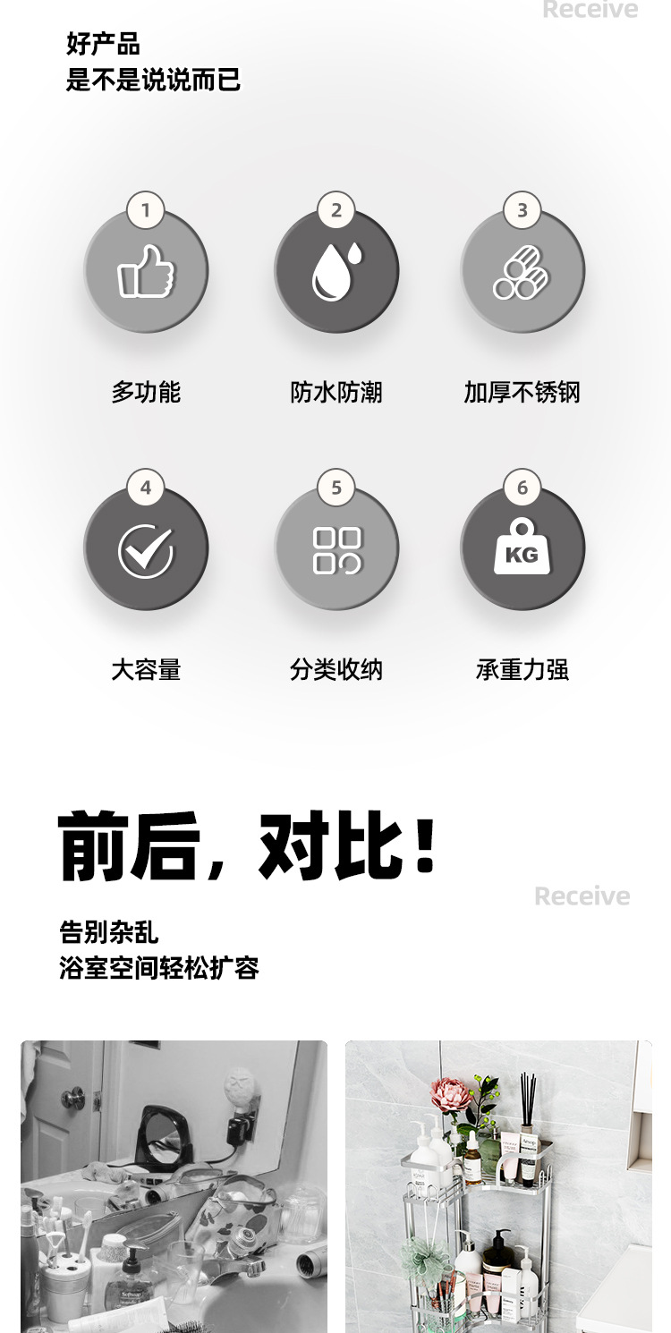 浴室置物架卫生间厕所洗澡间三角架打孔收纳架子洗手间落地转角架