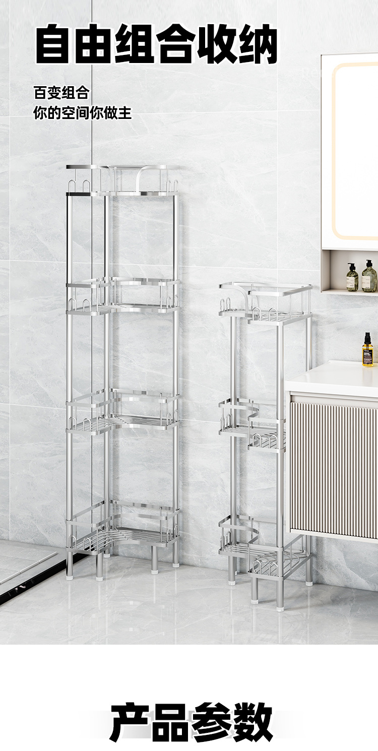 不锈钢卫生间置物架转角落地式防水多层三角储物架浴室夹缝收纳架