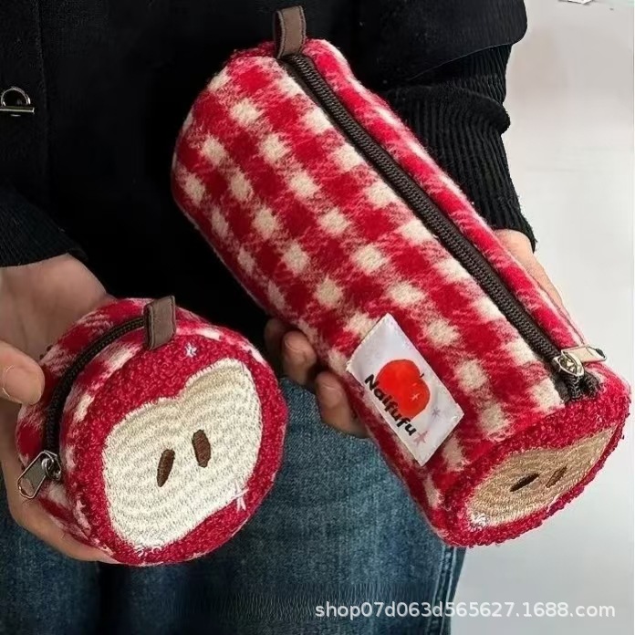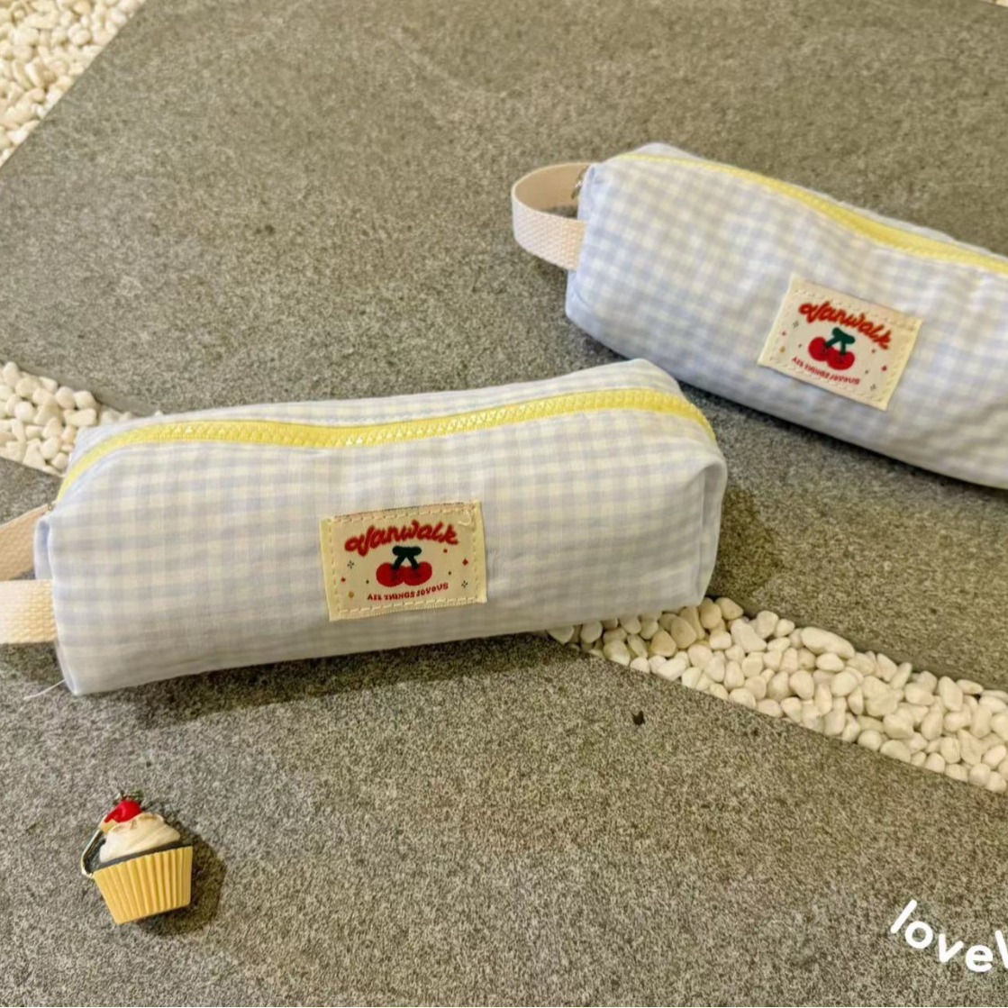 新しい小さい清新な格子の高い顔の価値のペンの袋のかわいい羊のinsの大容量のデスクトップの学生の文房具の収納袋