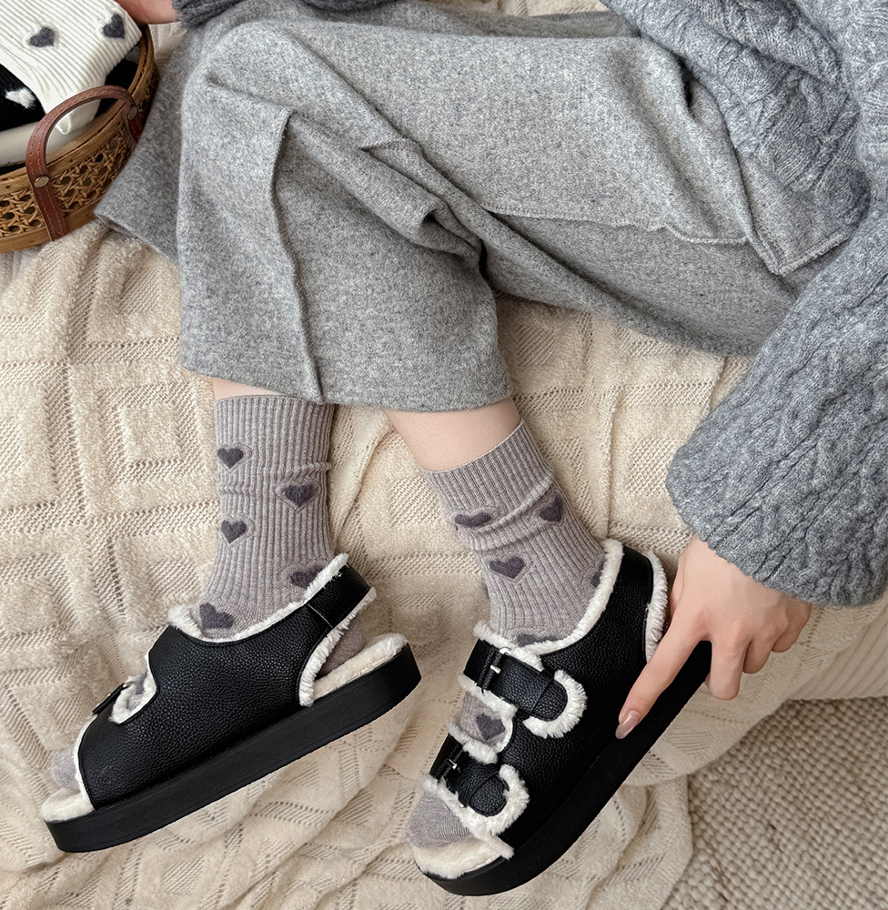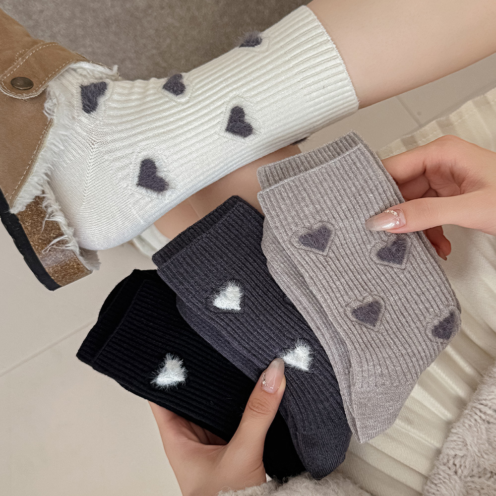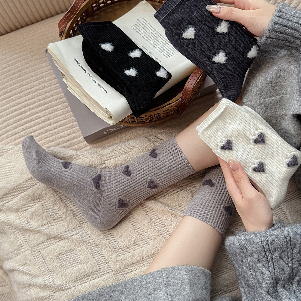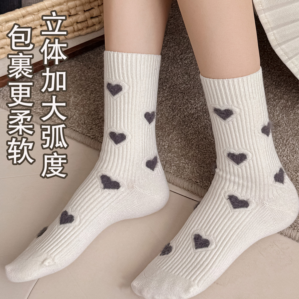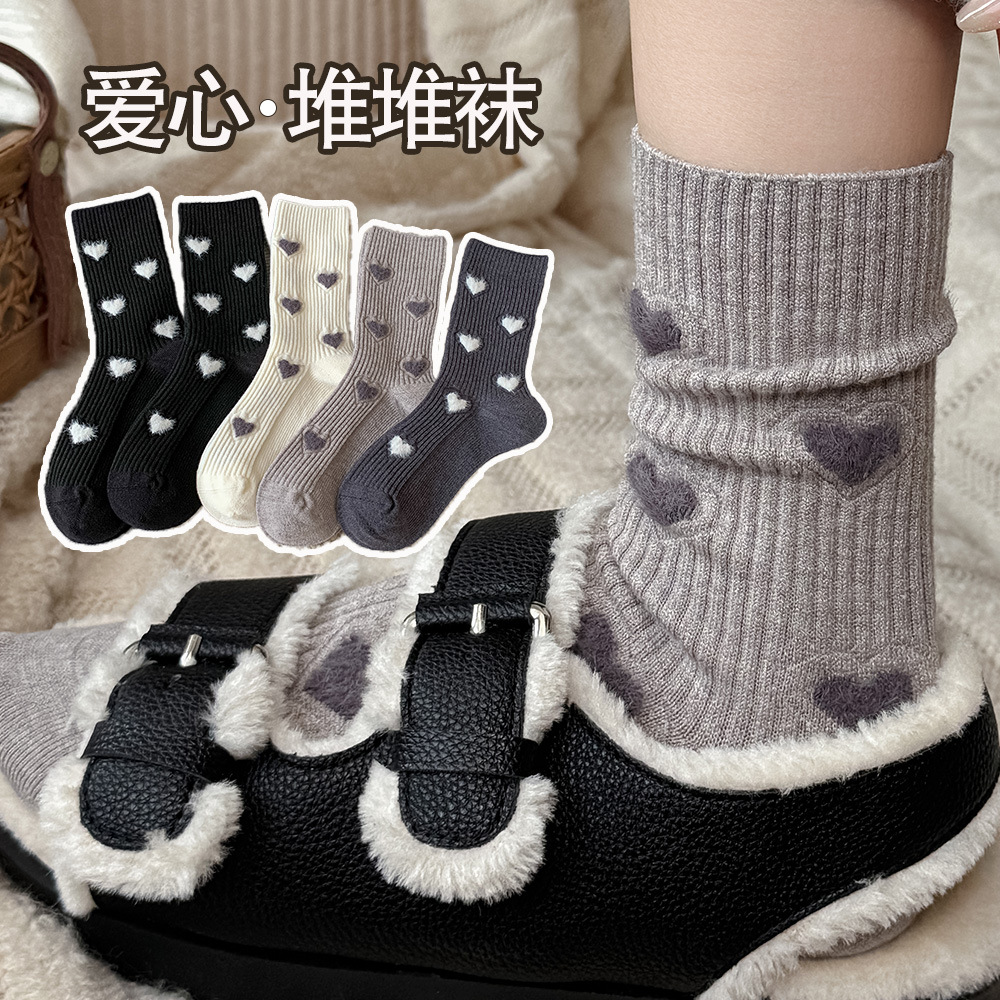 保暖羊绒袜子女秋冬中筒袜加厚堆堆袜无骨休闲百搭袜子爱心袜子