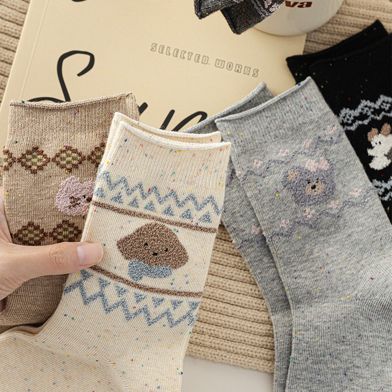 秋冬新款袜子女中筒袜可爱卡通韩系无骨小狗长筒袜棉袜批发零售