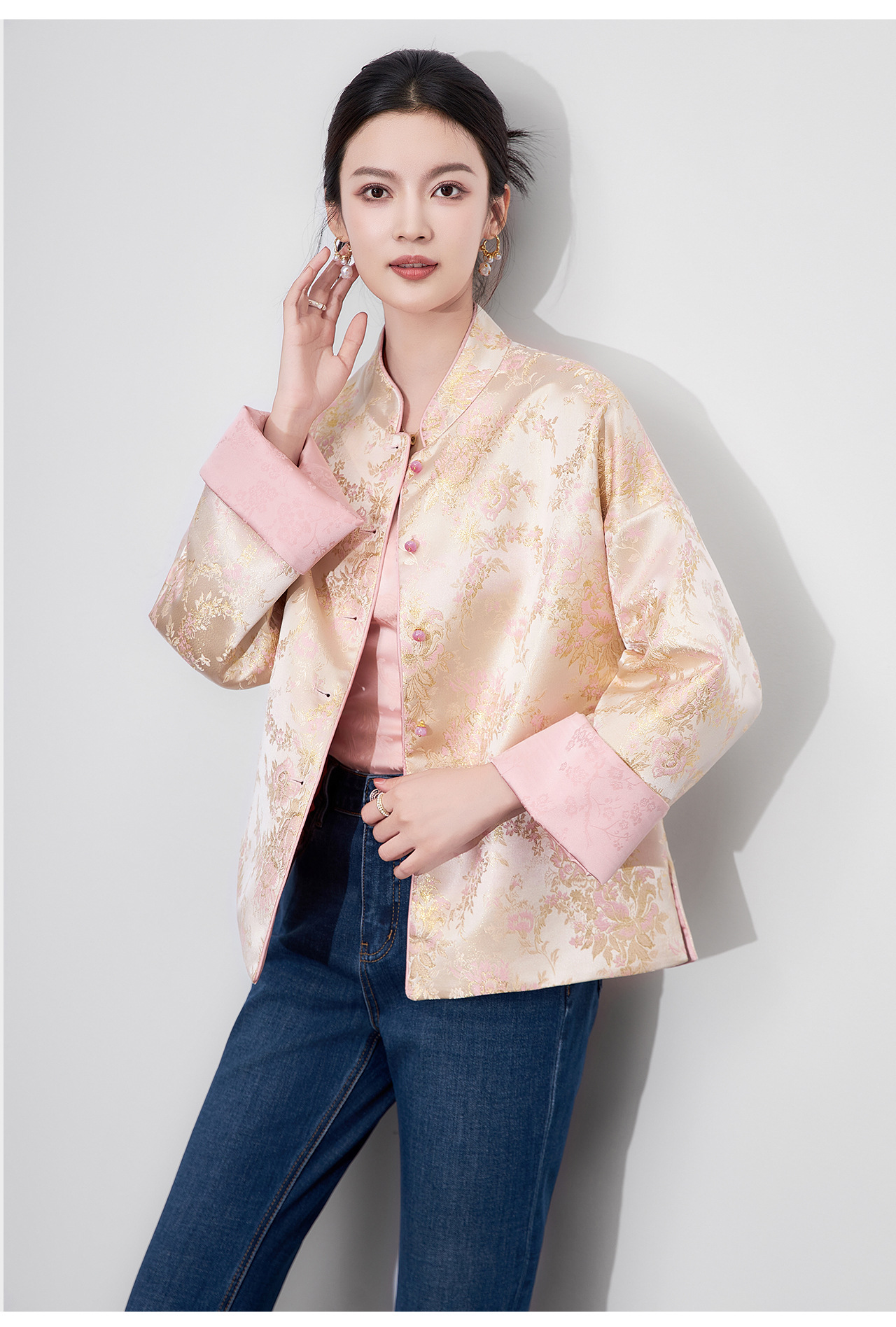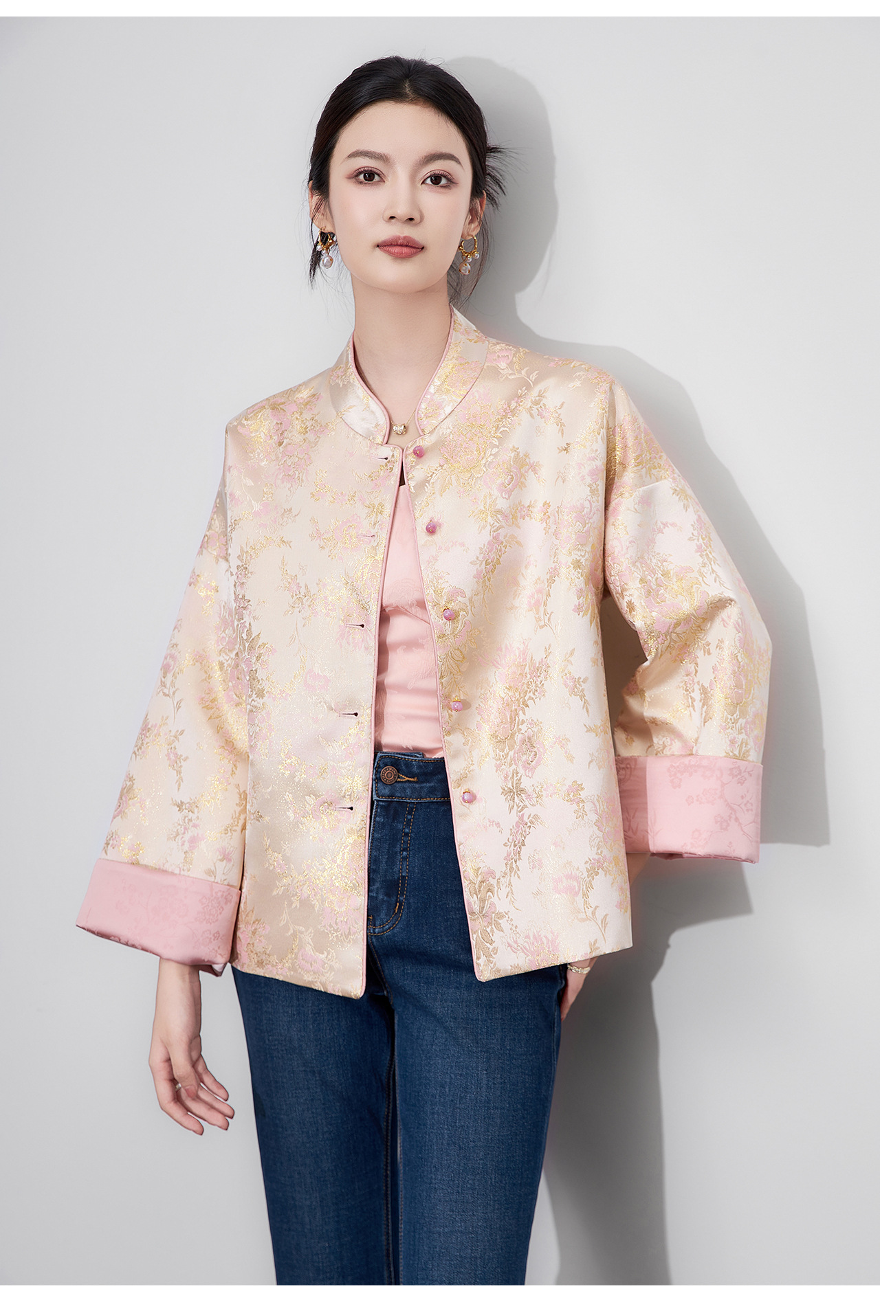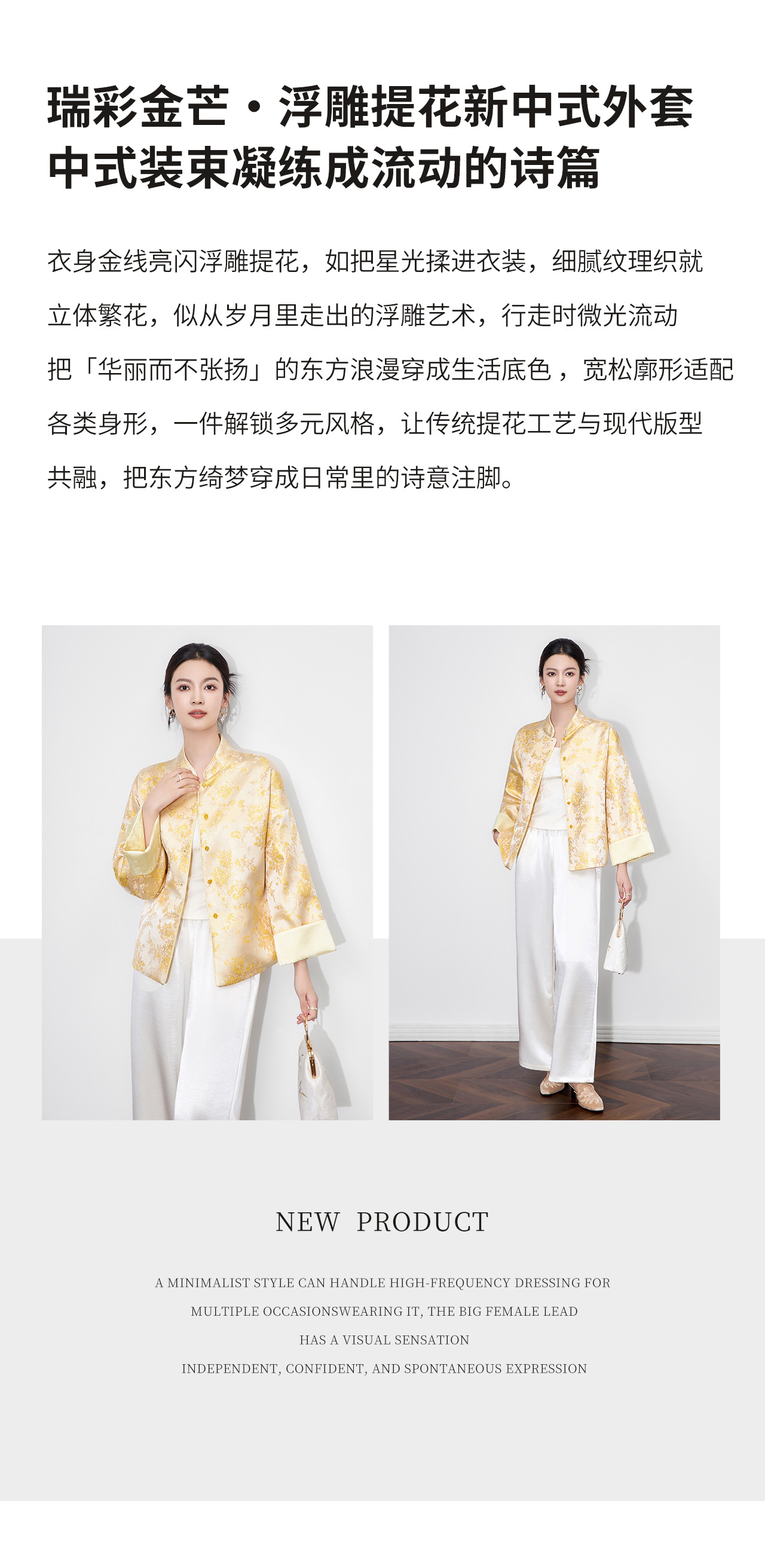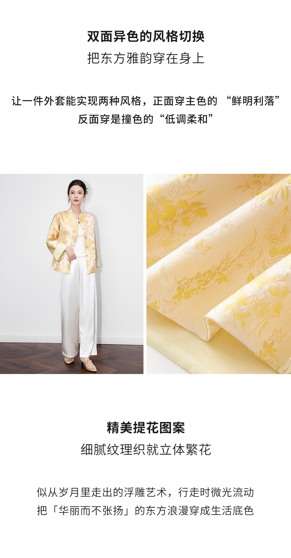 2511510-瑞彩琼纹金线亮闪浮雕提花国风两面可穿外套上衣女秋南油