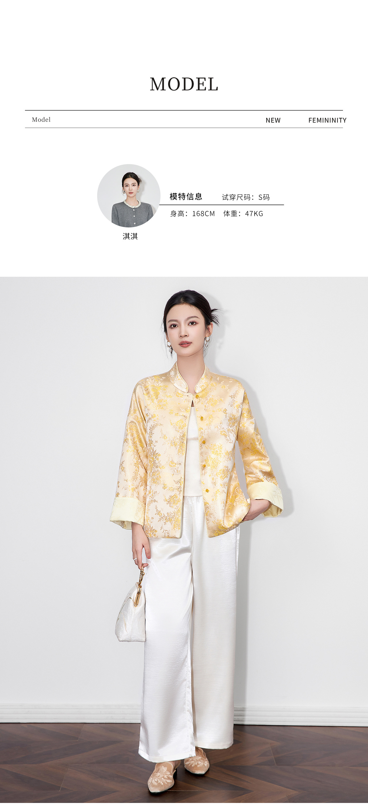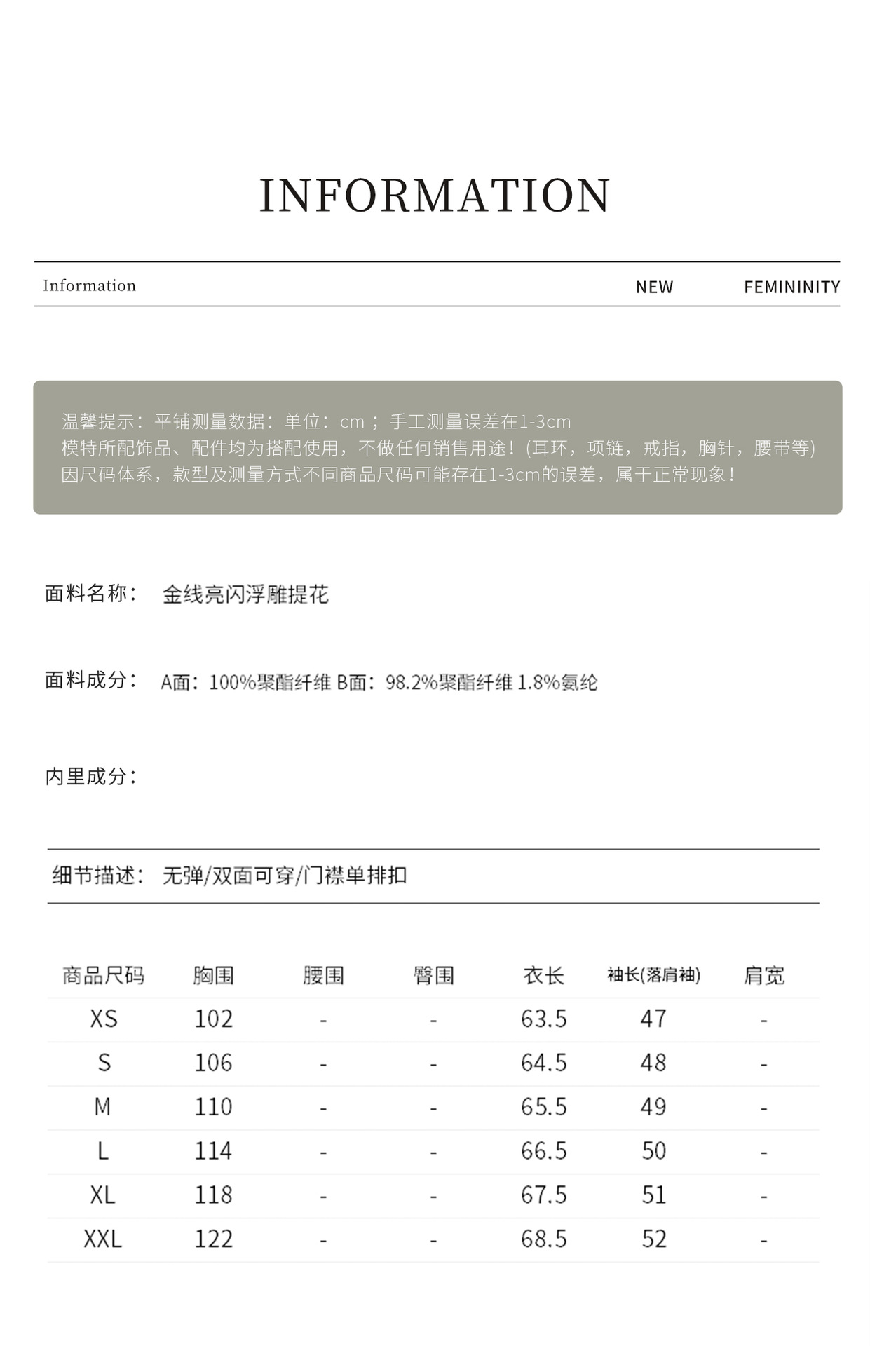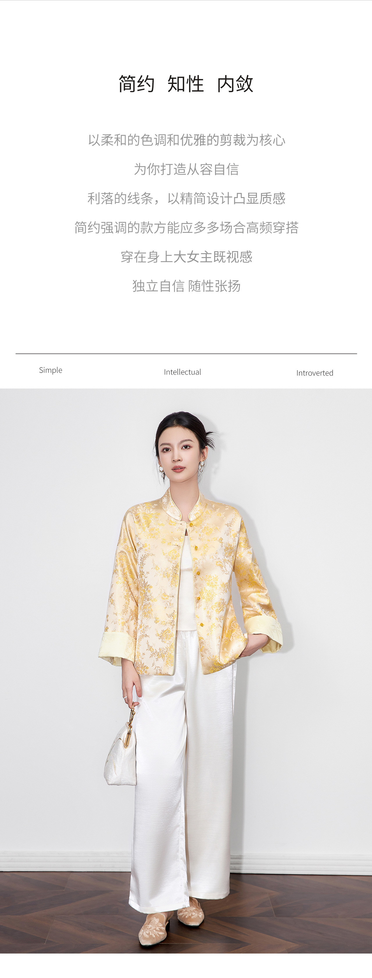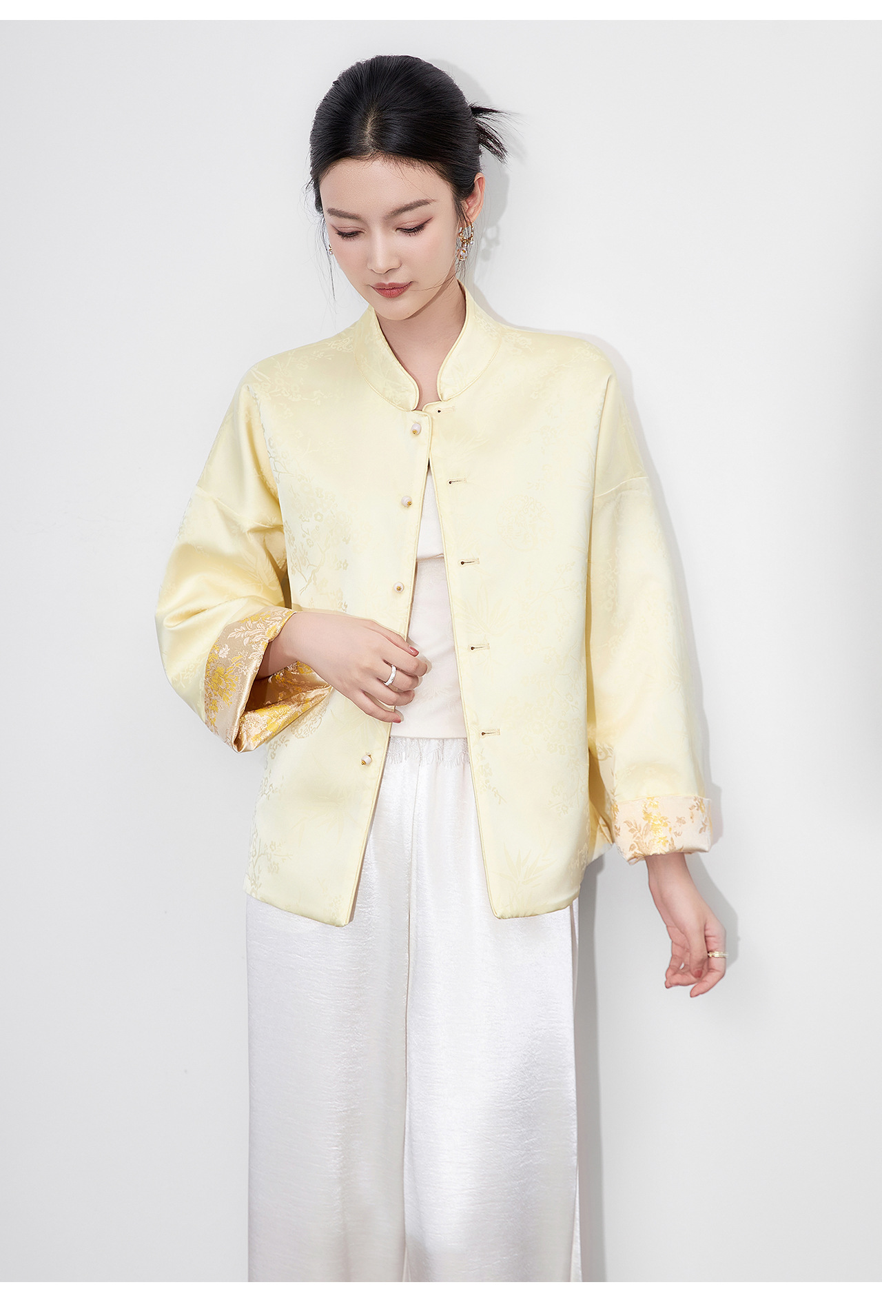 2511510-瑞彩琼纹金线亮闪浮雕提花国风两面可穿外套上衣女秋南油