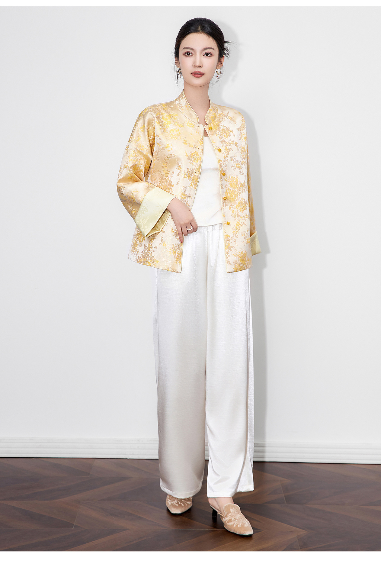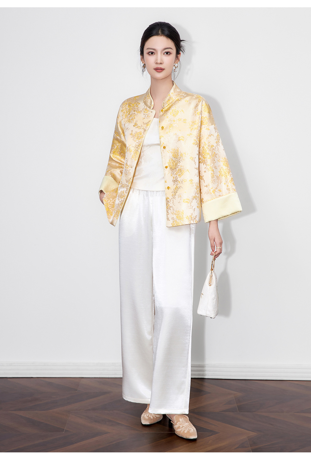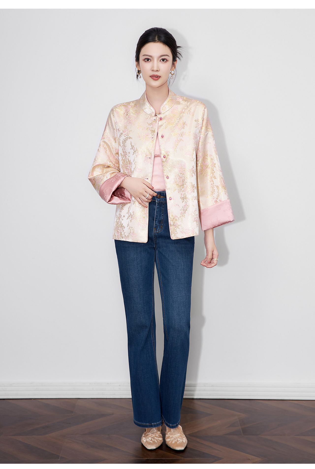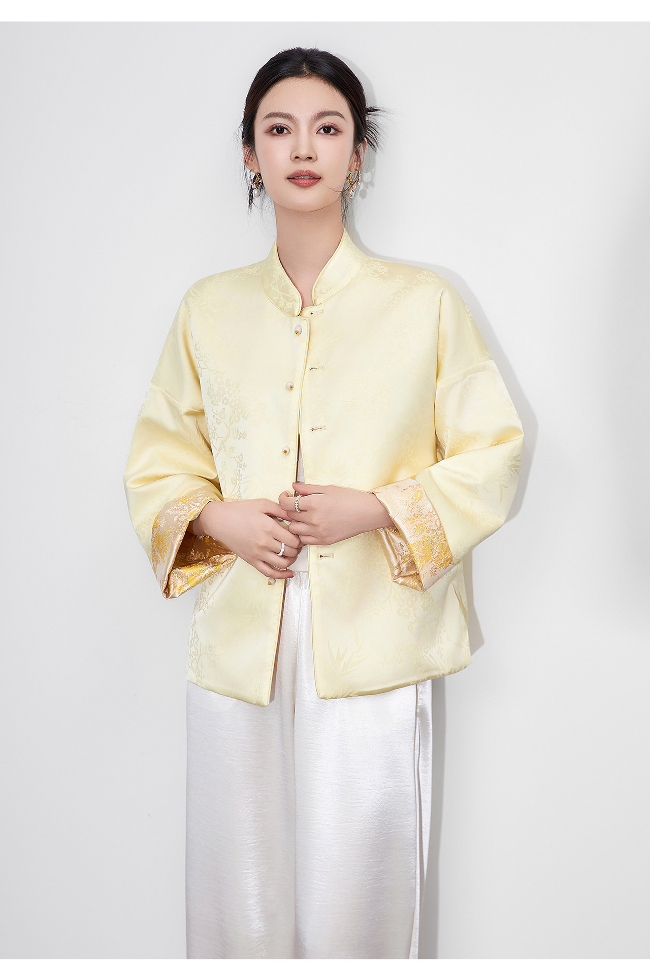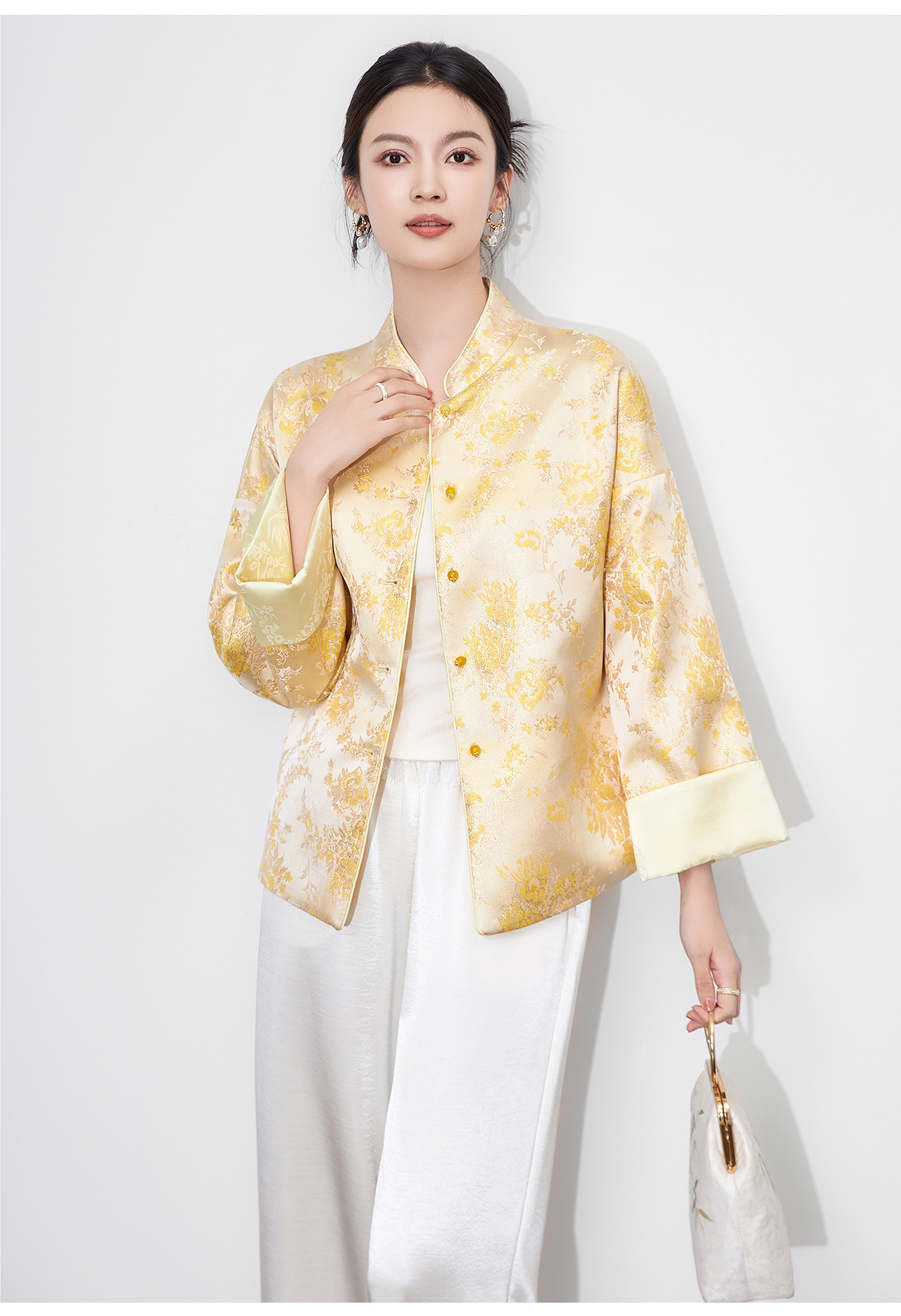 2511510-瑞彩琼纹金线亮闪浮雕提花国风两面可穿外套上衣女秋南油