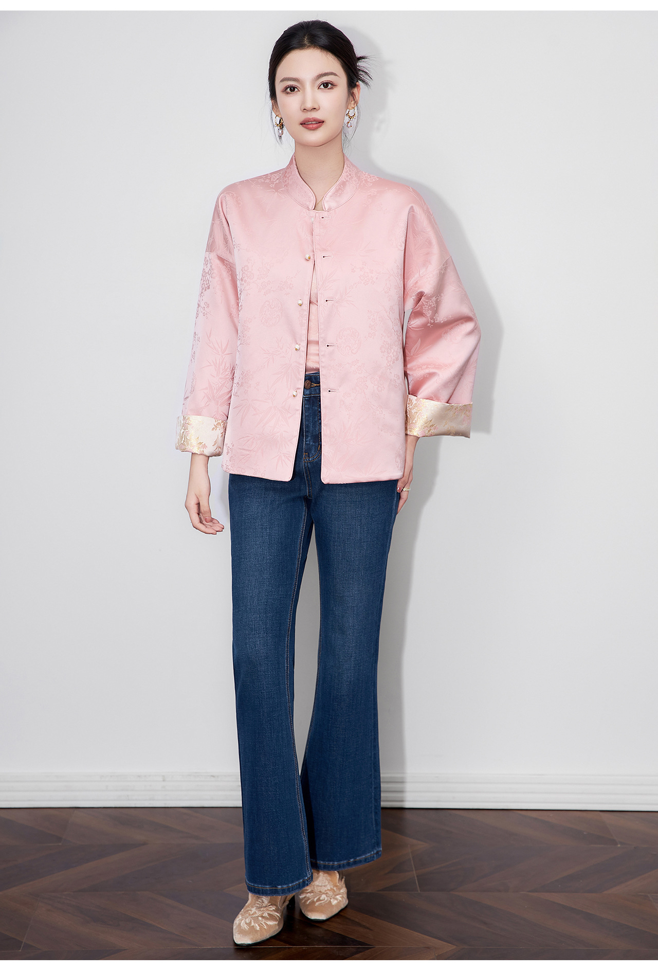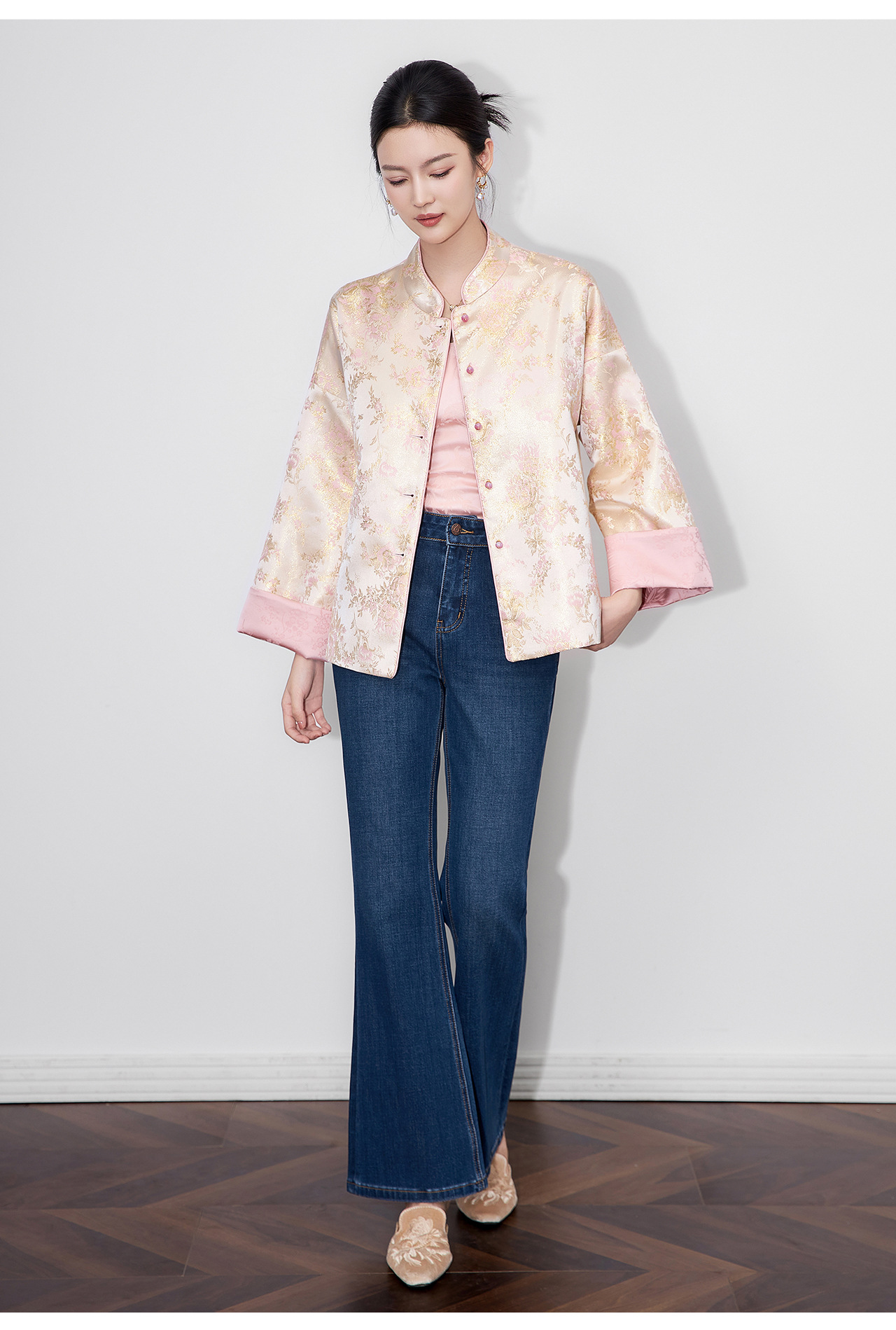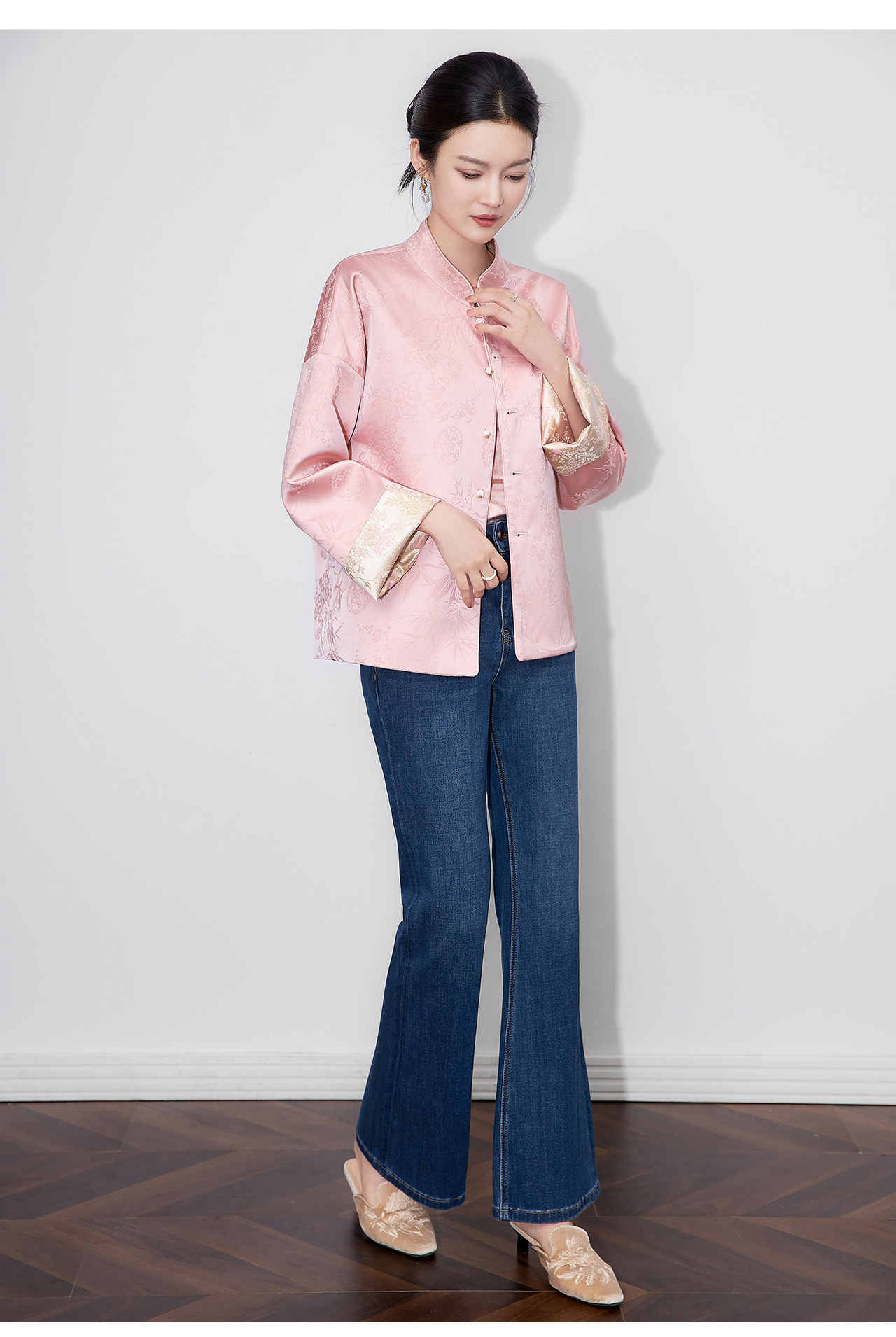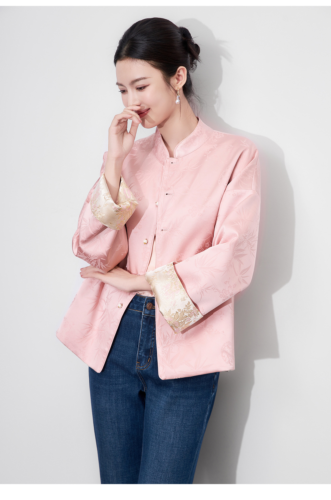 2511510-瑞彩琼纹金线亮闪浮雕提花国风两面可穿外套上衣女秋南油