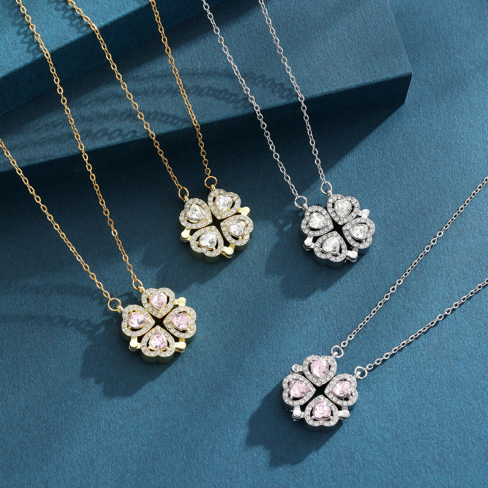 【铜吊坠】亚马逊跨境爆款轻奢满锆轻奢爱心四叶草磁吸项链高级感