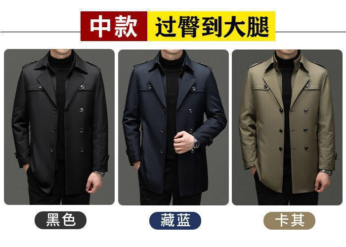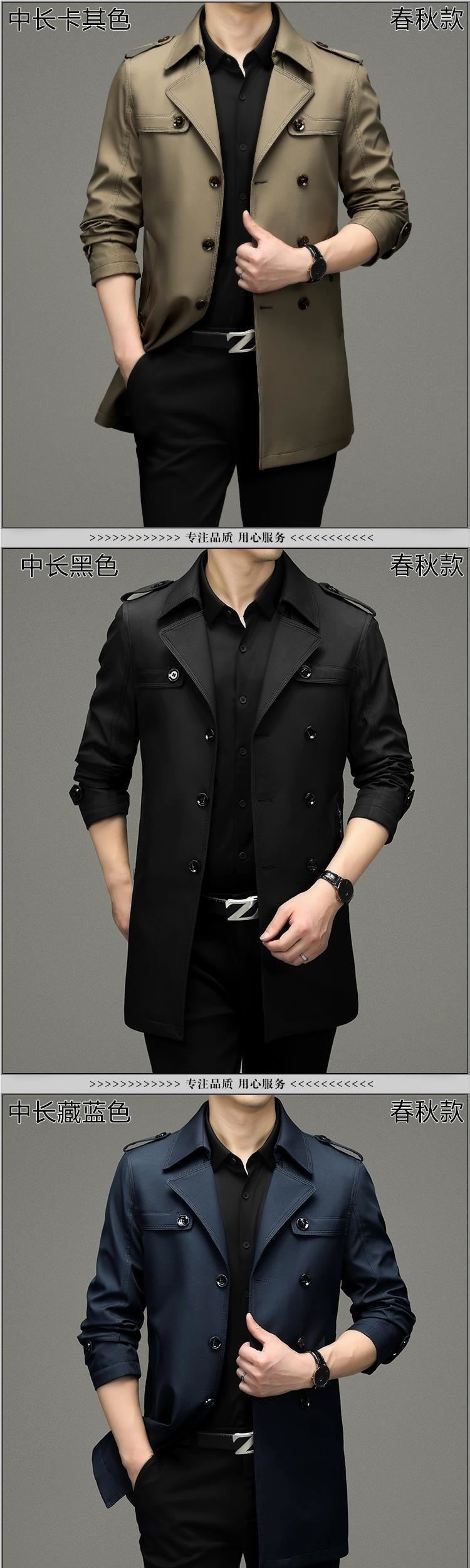 颜色 中长款脱内胆风衣-【黑色】(过臀部2159),中长款脱内胆风衣-【藏蓝】(过臀部2159),中长款脱内胆风衣-【卡其】(过臀部2159)