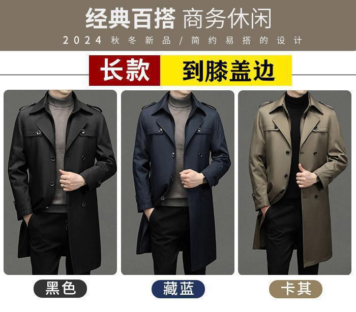 2024春秋秋の新型トレンチコート男性の中長タイプ男性中年ビジネスカジュアルスーツのお父さん服