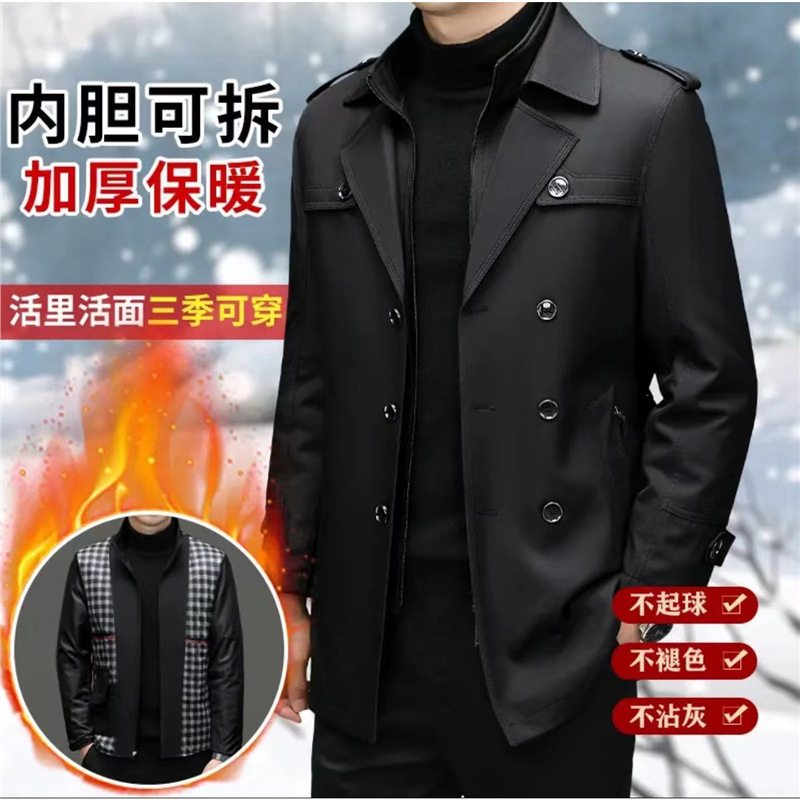 男装活里活面内胆可拆男士保暖风衣商务休闲中长男装外套爸爸上衣