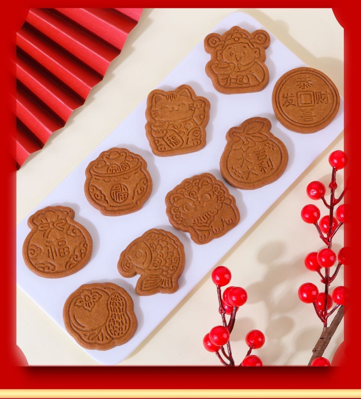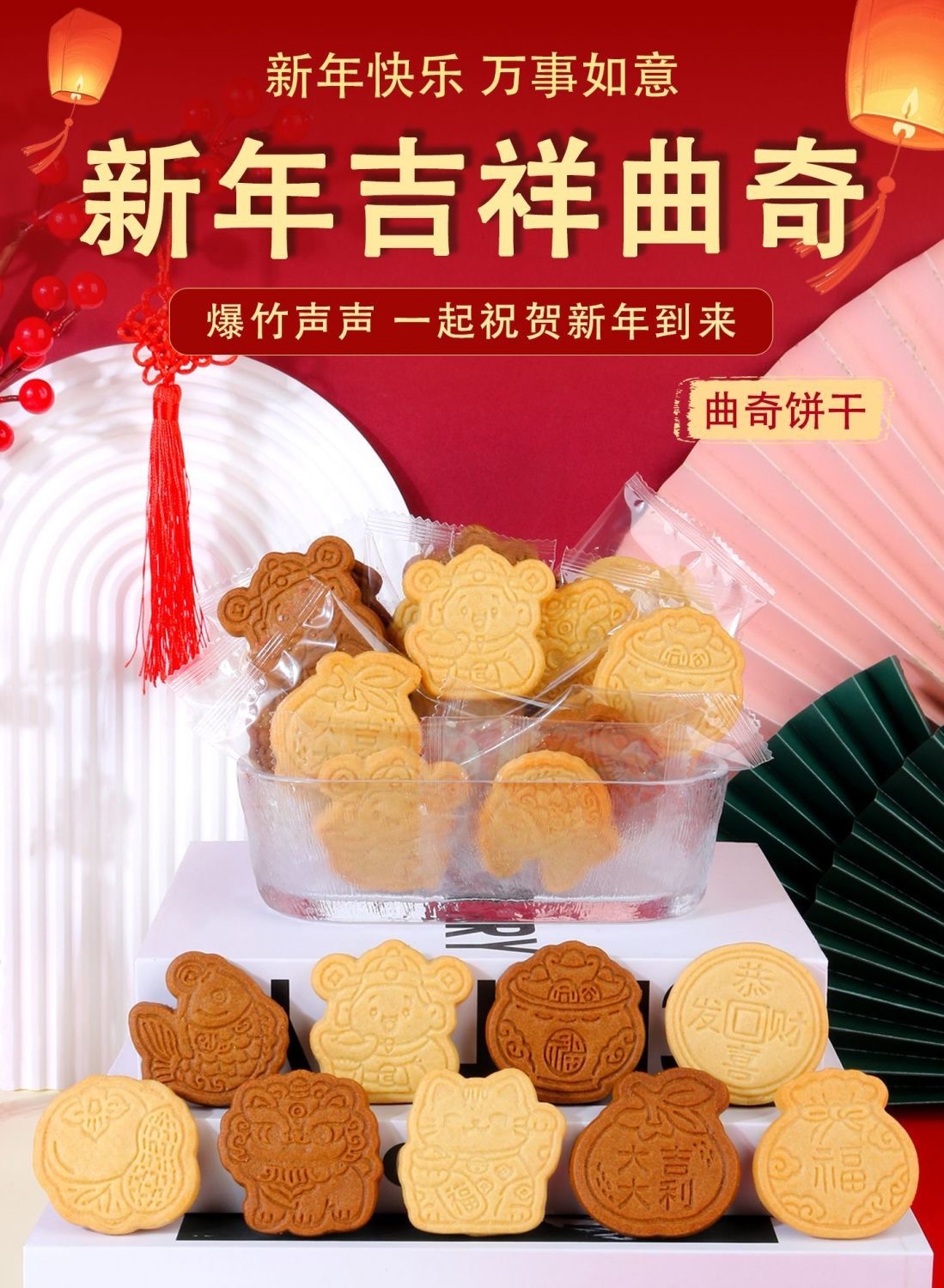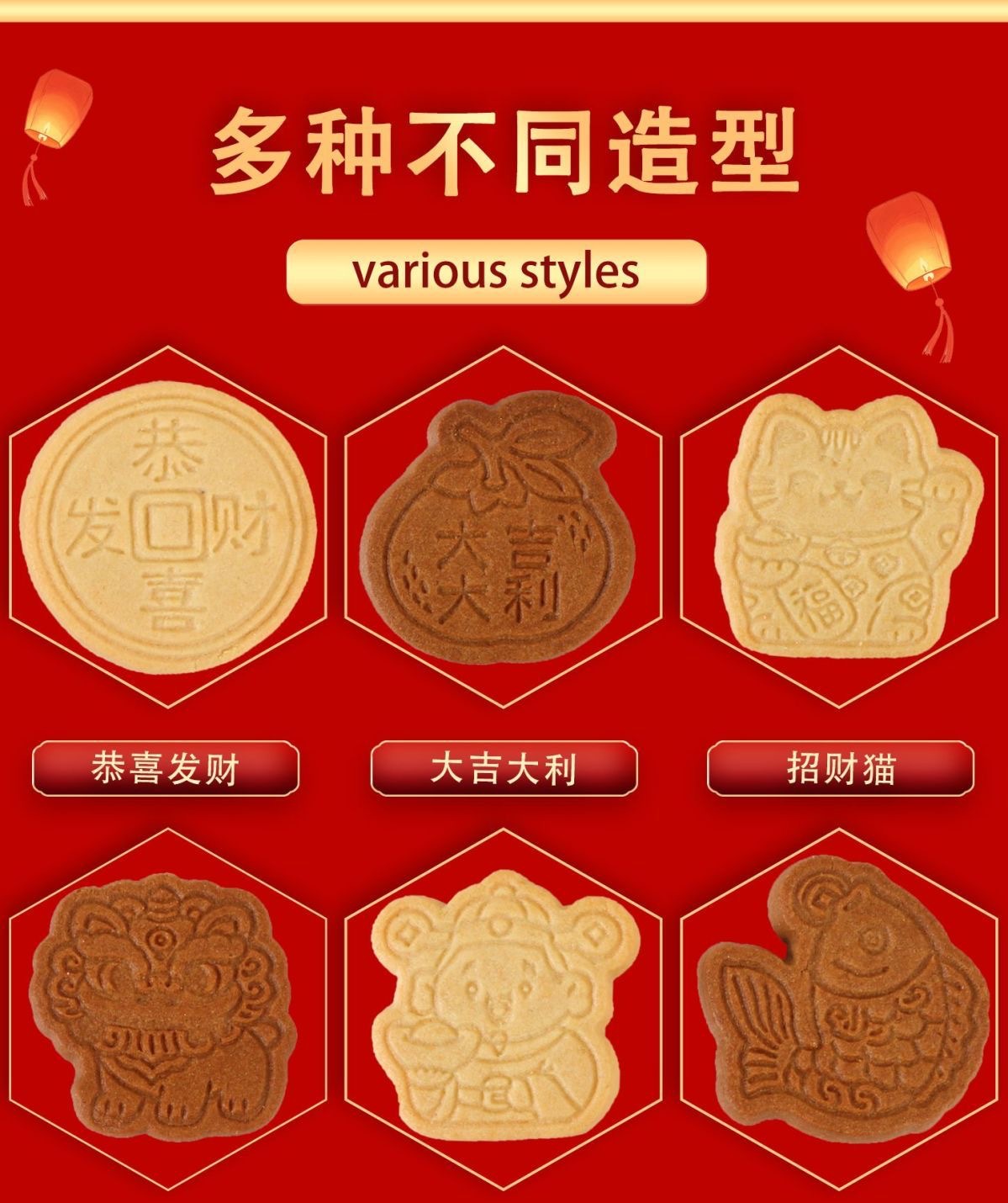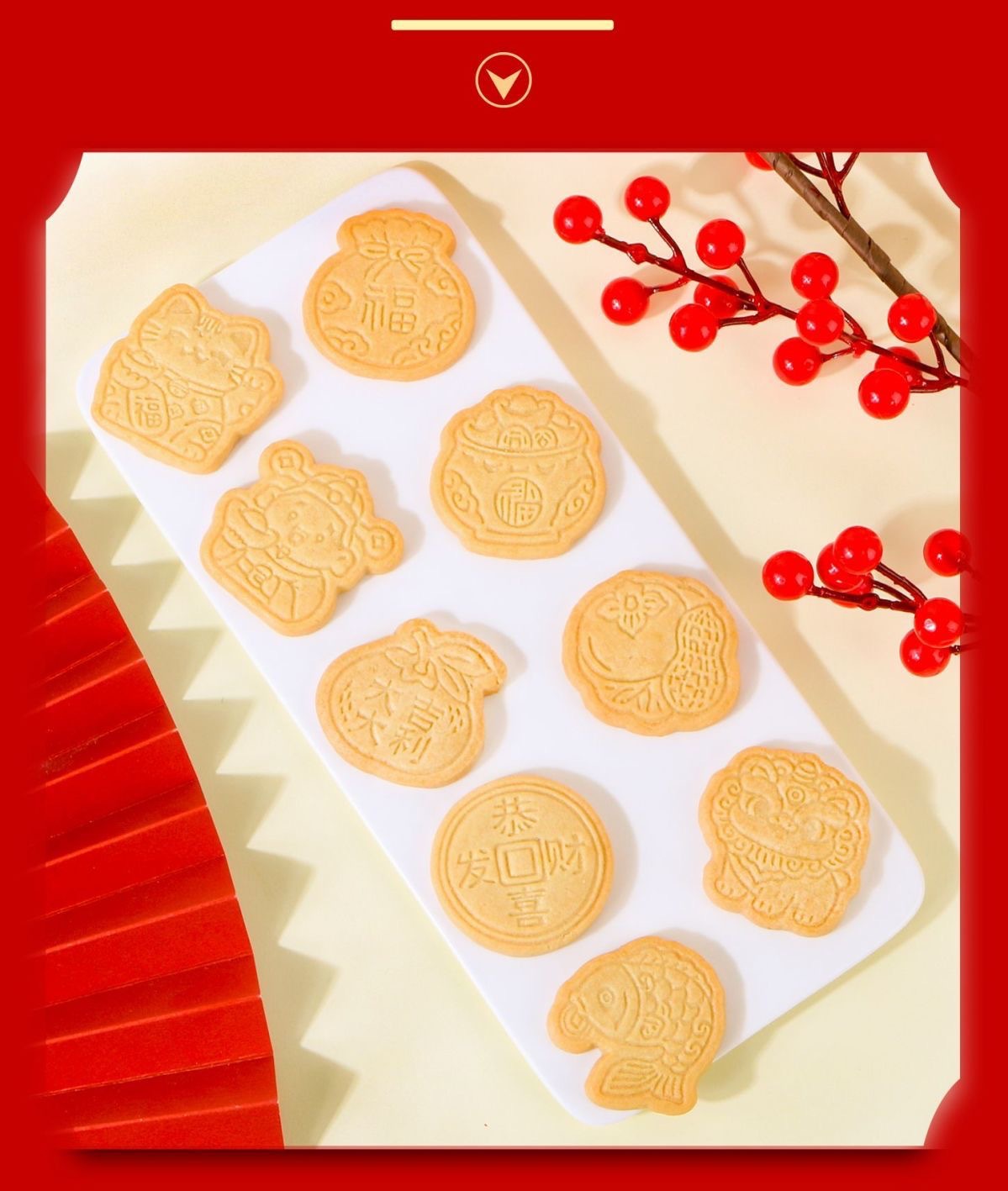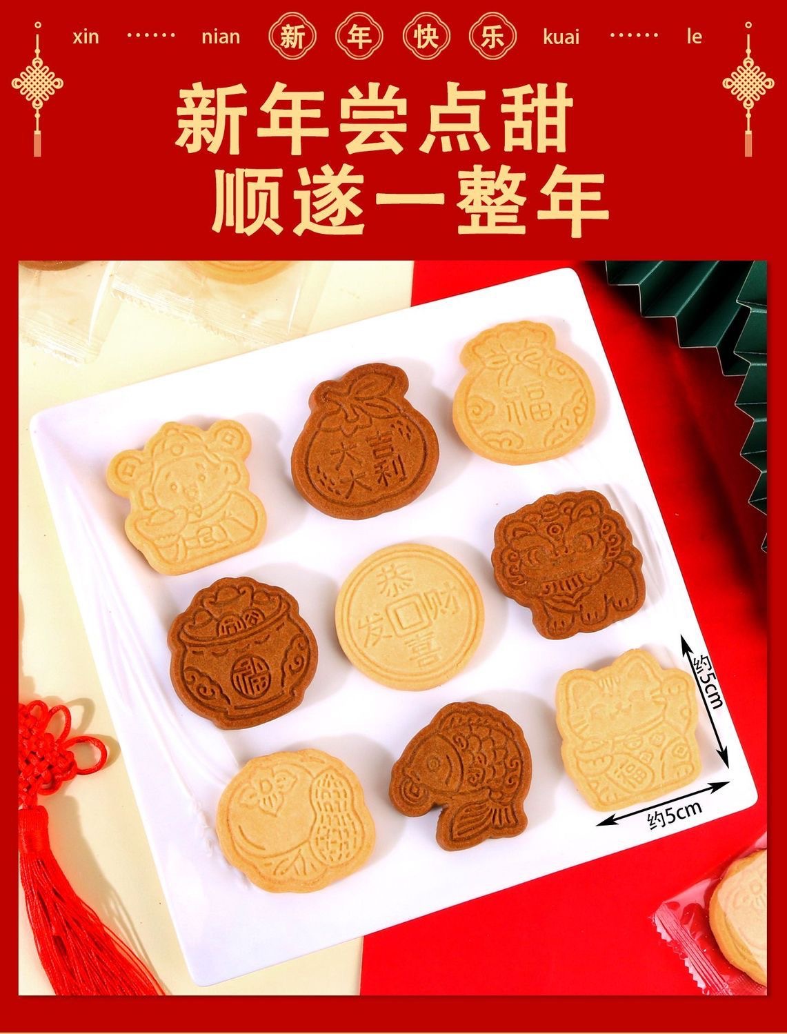 黄油味新年曲奇饼干发财主题图案造型新年过年饼干限定送礼