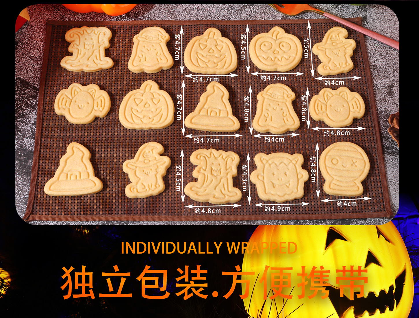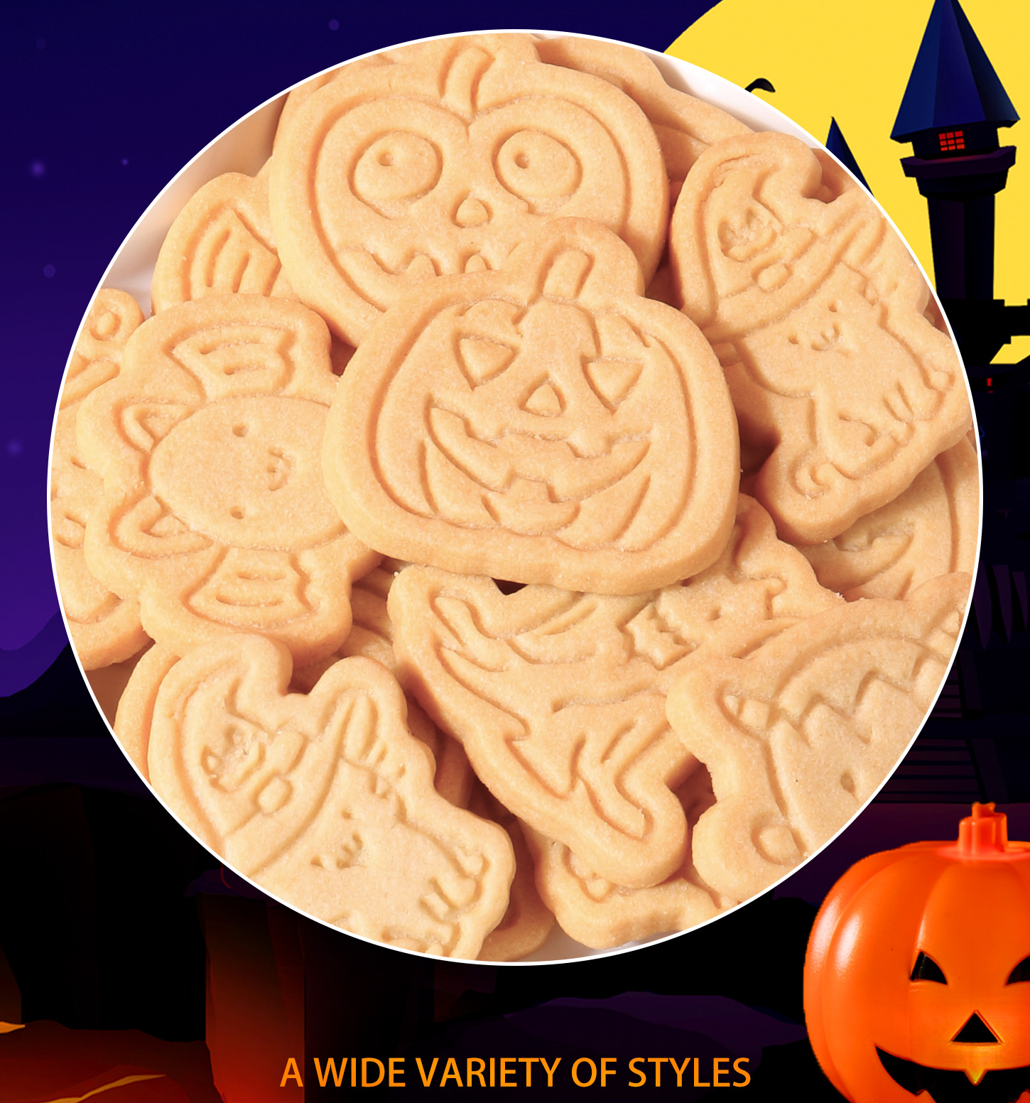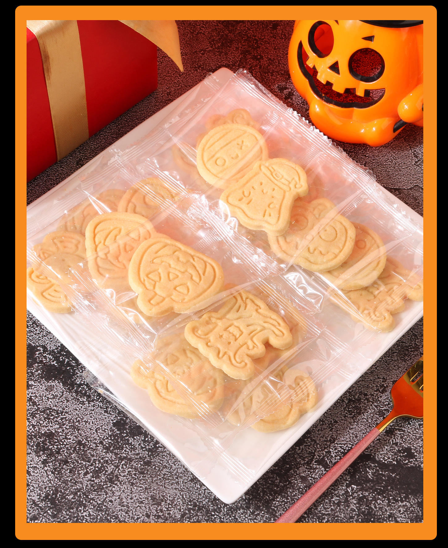 包装规格 黄油味新年曲奇饼干【袋装18个】150克,咖啡味新年曲奇饼干【袋装18个】150克,黄油味万圣曲奇饼干【袋装22个】150克,咖啡味万圣曲奇饼干【袋装22个】150克,黄油味圣诞曲奇饼干【袋装22个】136克,咖啡味圣诞曲奇饼干【袋装22个】136克