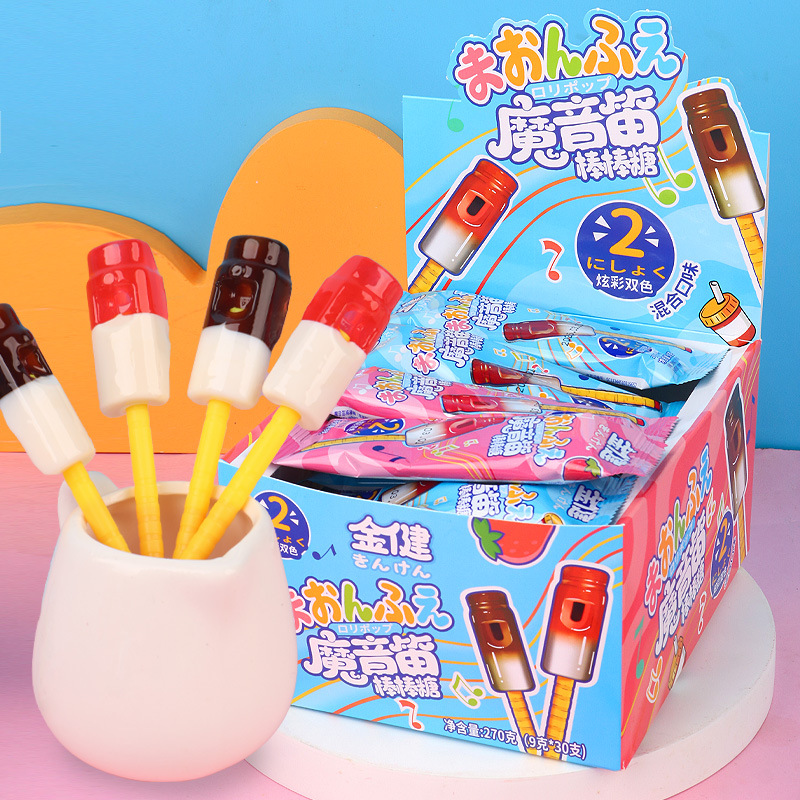 マジックサウンドフルートロリポップホイッスルキャンディーコーラストロベリー味フルーツ2色子供用楽しいキャンディー共有スナック
