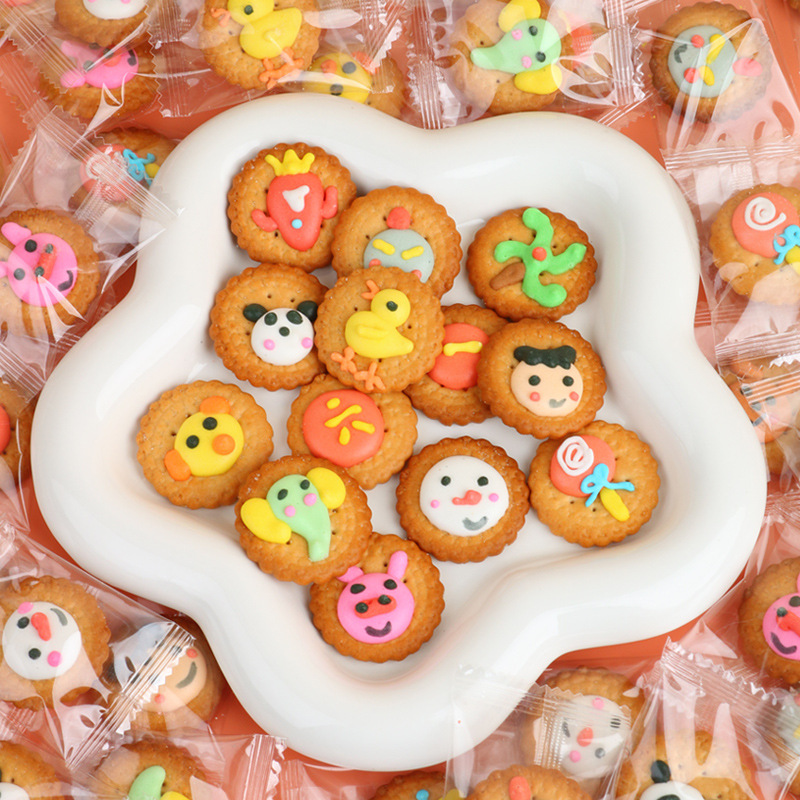 工場卸売バルク装飾ビスケット漫画パターンアイシングビスケット独立した小さな包装スナックキャンディ