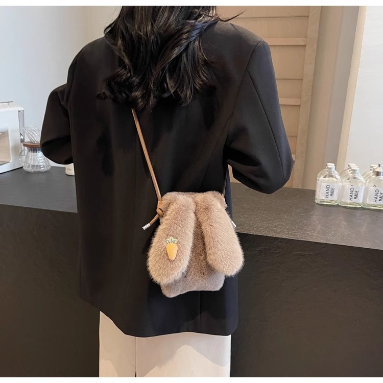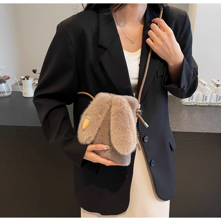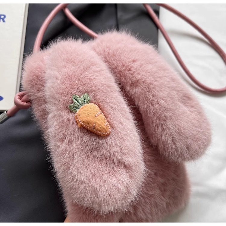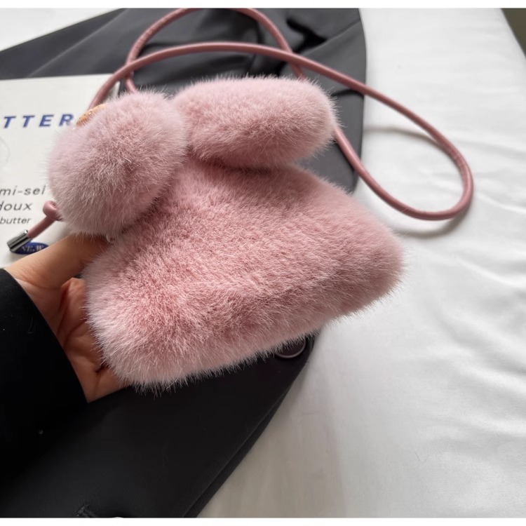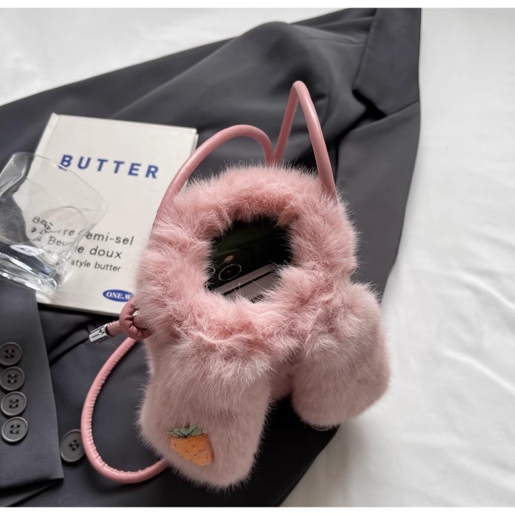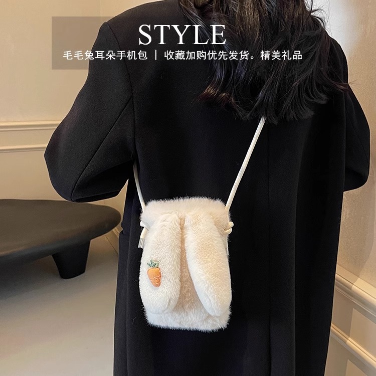秋冬新款时尚毛毛手机包时尚百搭斜挎包可爱毛绒女洋气潮流兔子包