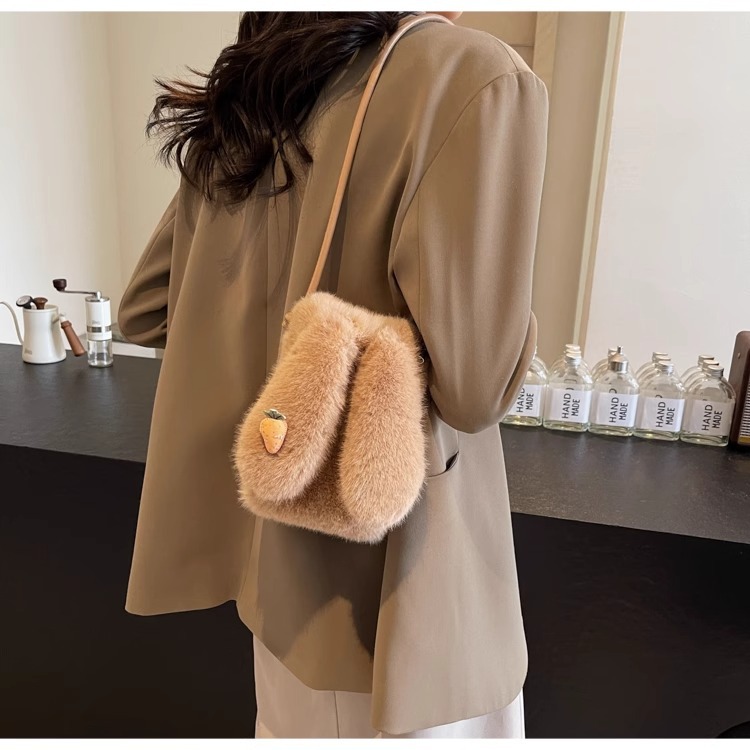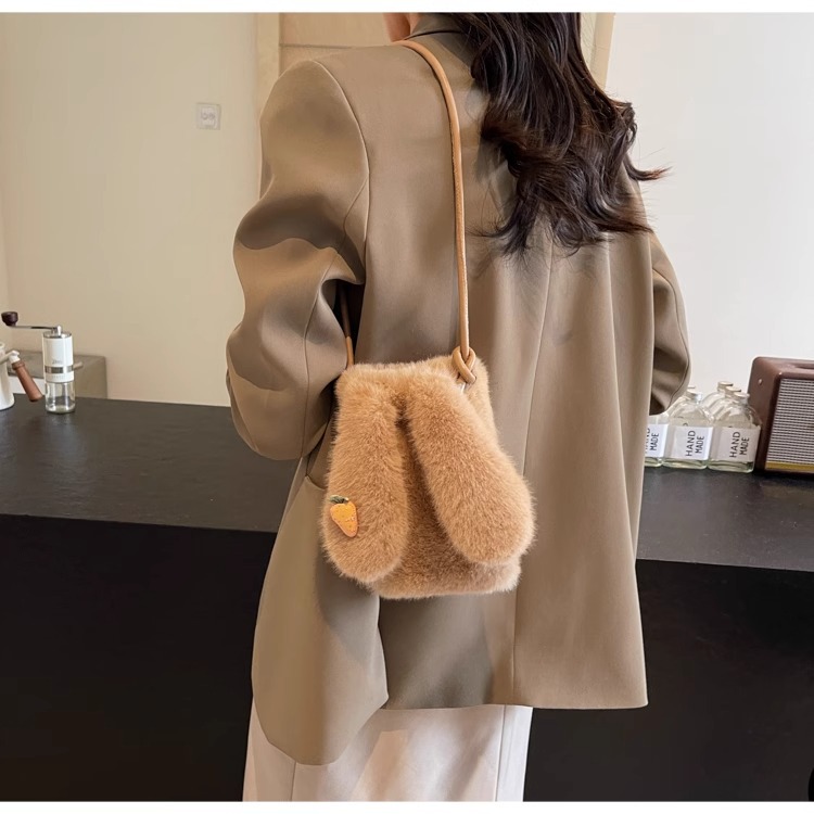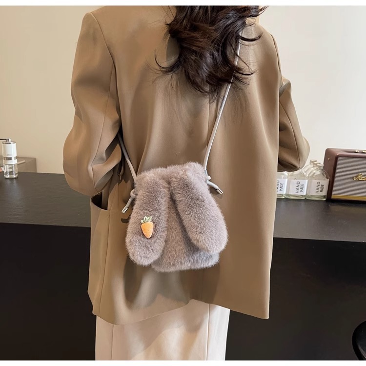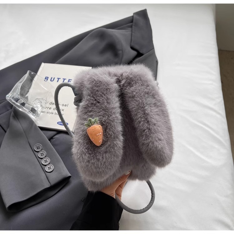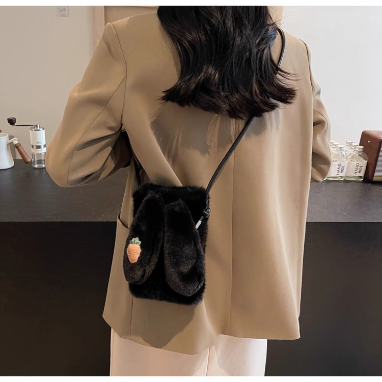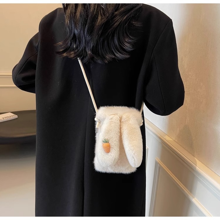 秋冬新款时尚毛毛手机包时尚百搭斜挎包可爱毛绒女洋气潮流兔子包