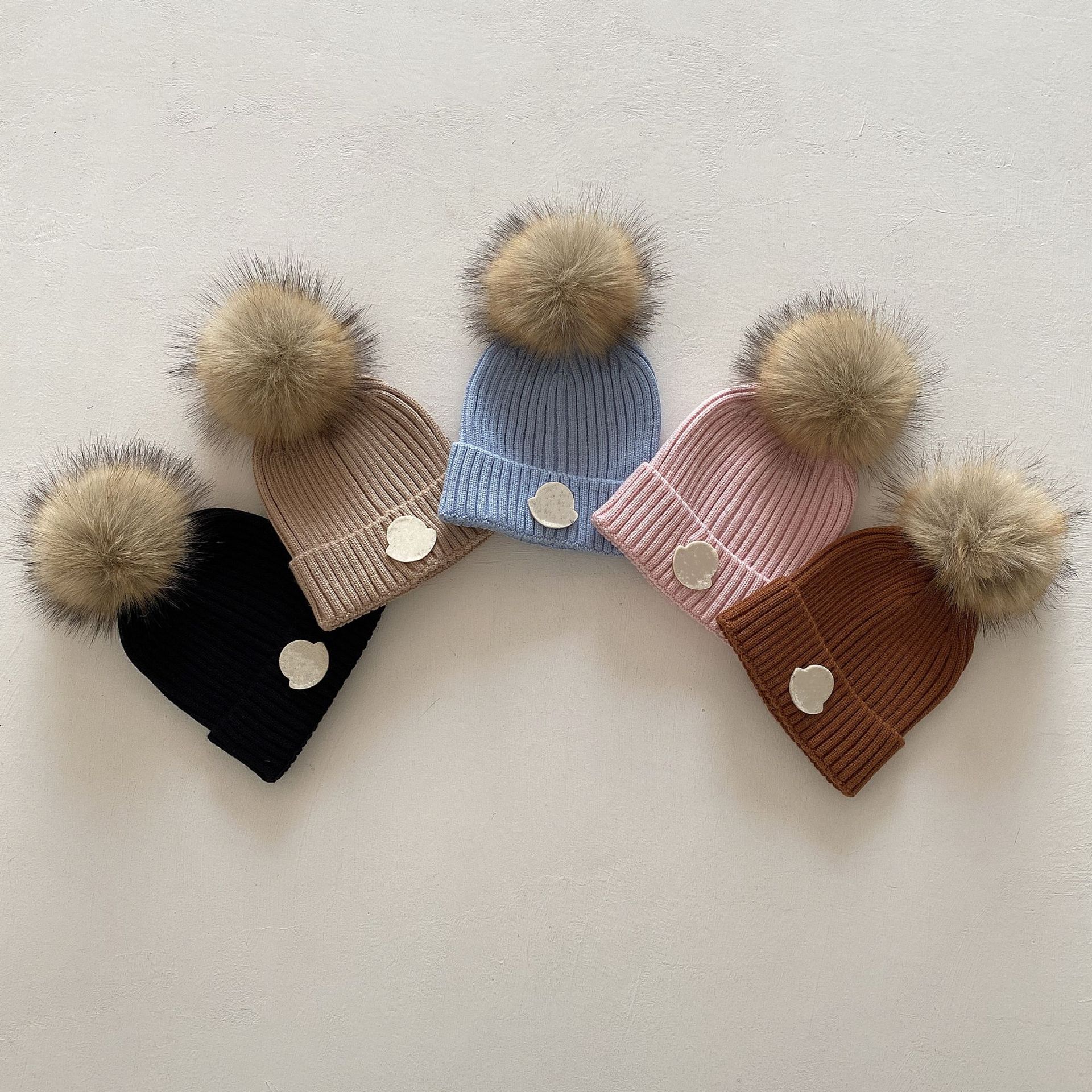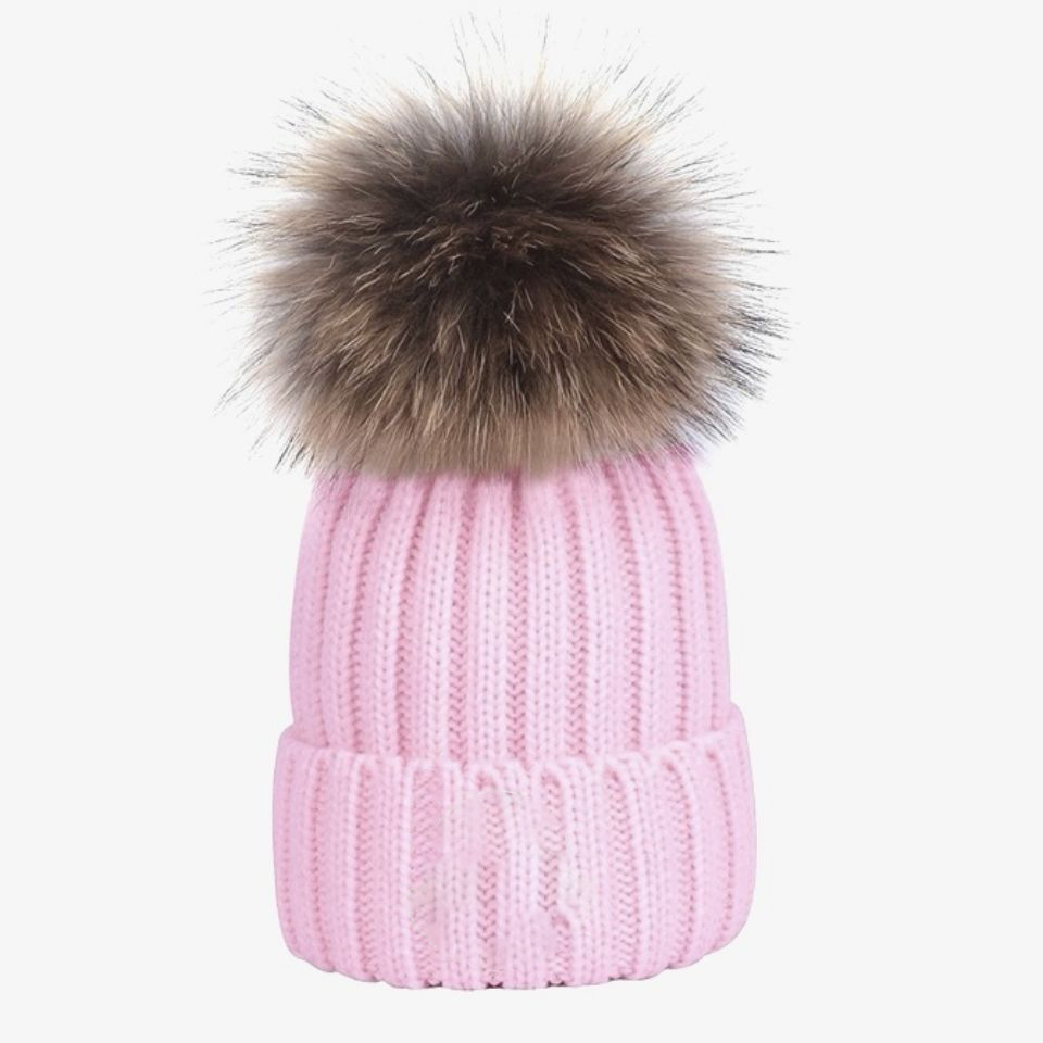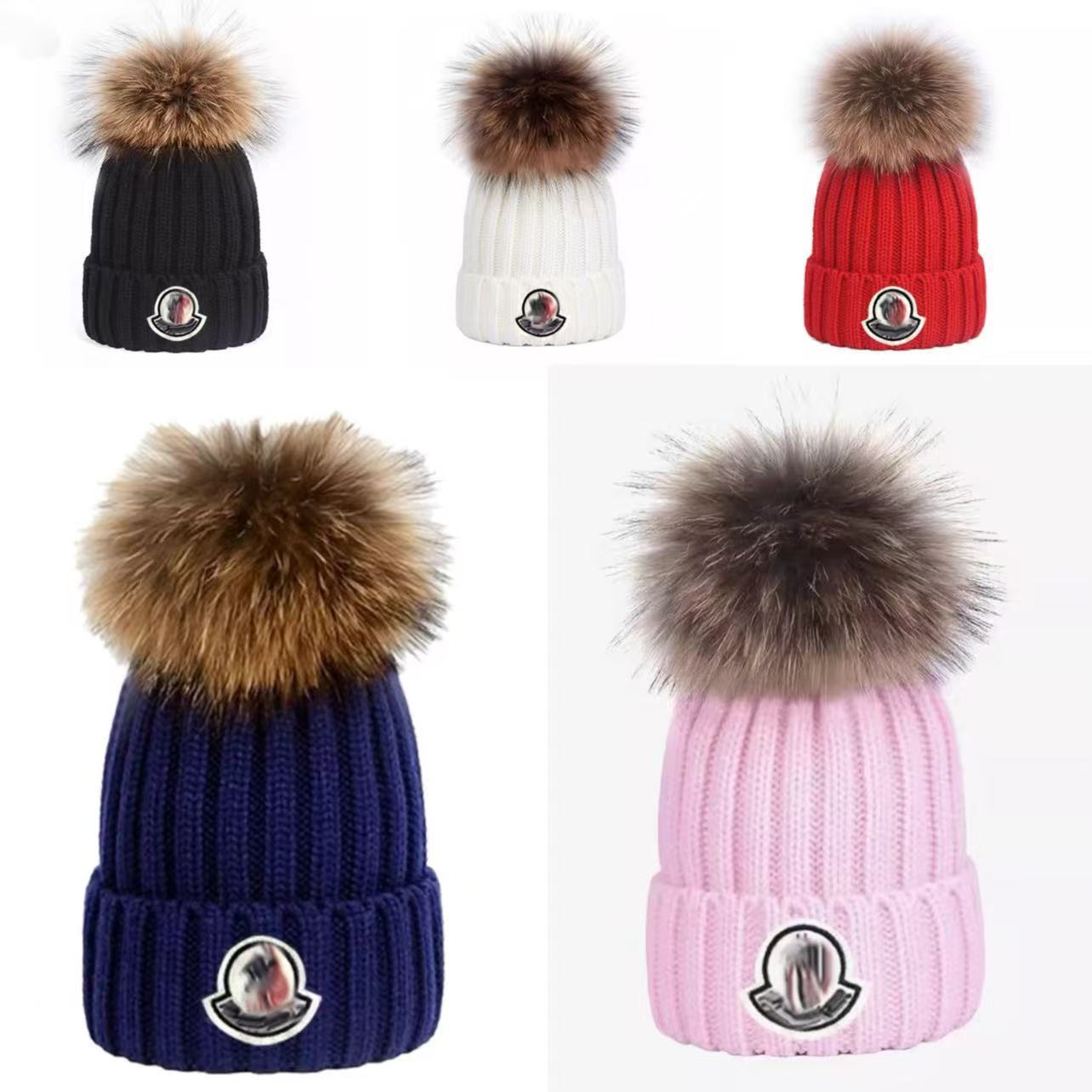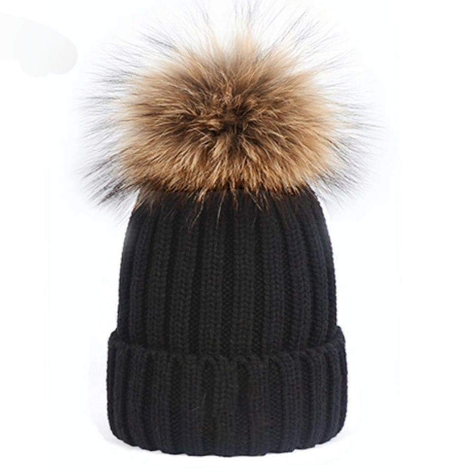 儿童针织帽冬季时尚百搭休闲暖帽貉子毛球毛线帽蒙家加厚户外保暖
