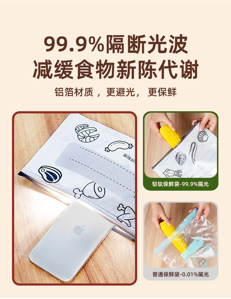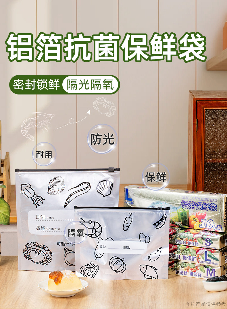铝箔抗菌保鲜袋食品级铝钛箔冰箱食物密封自封袋冷冻冷藏保鲜袋