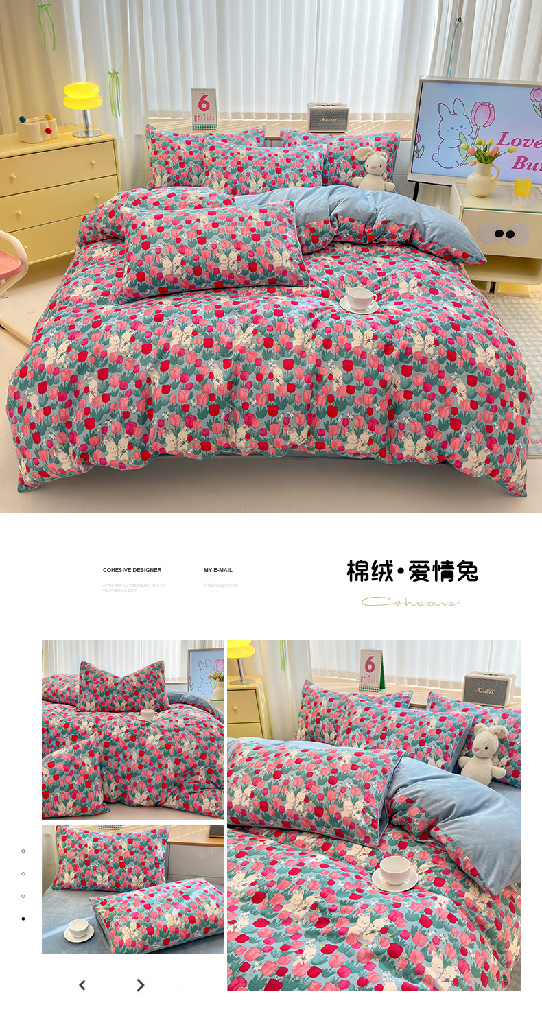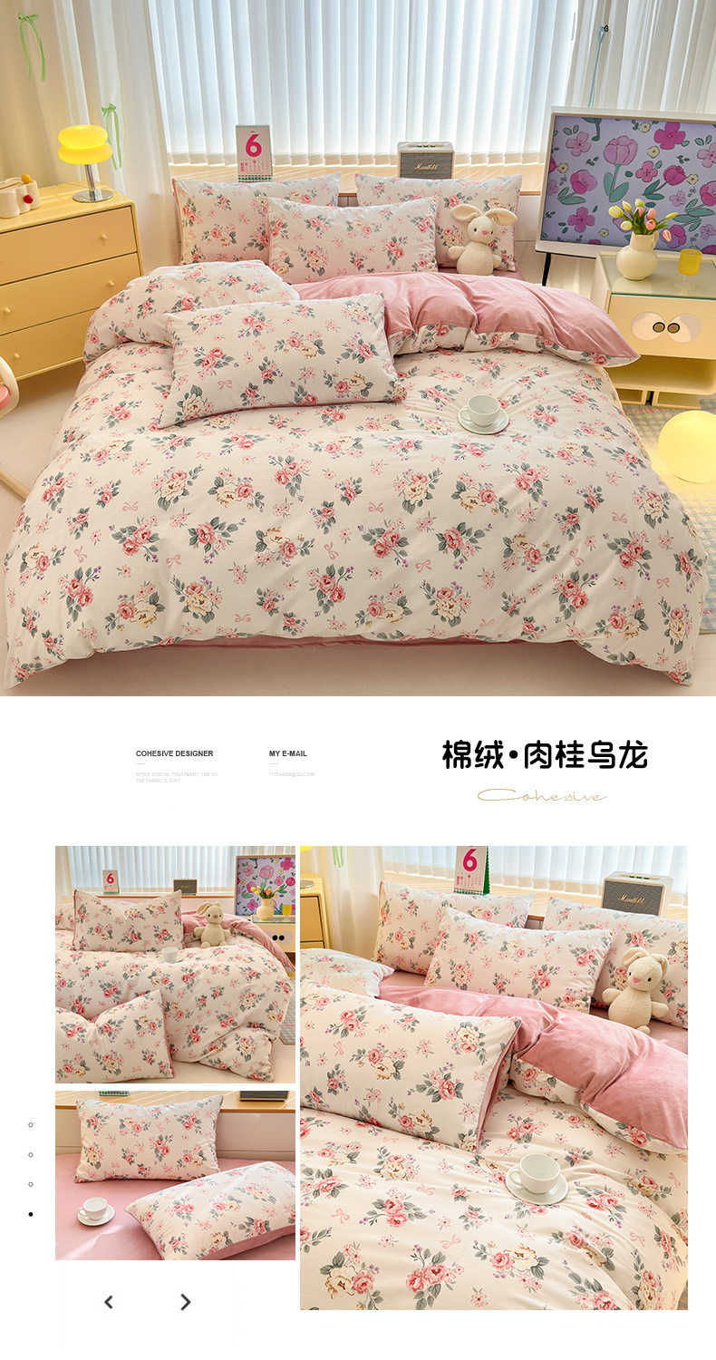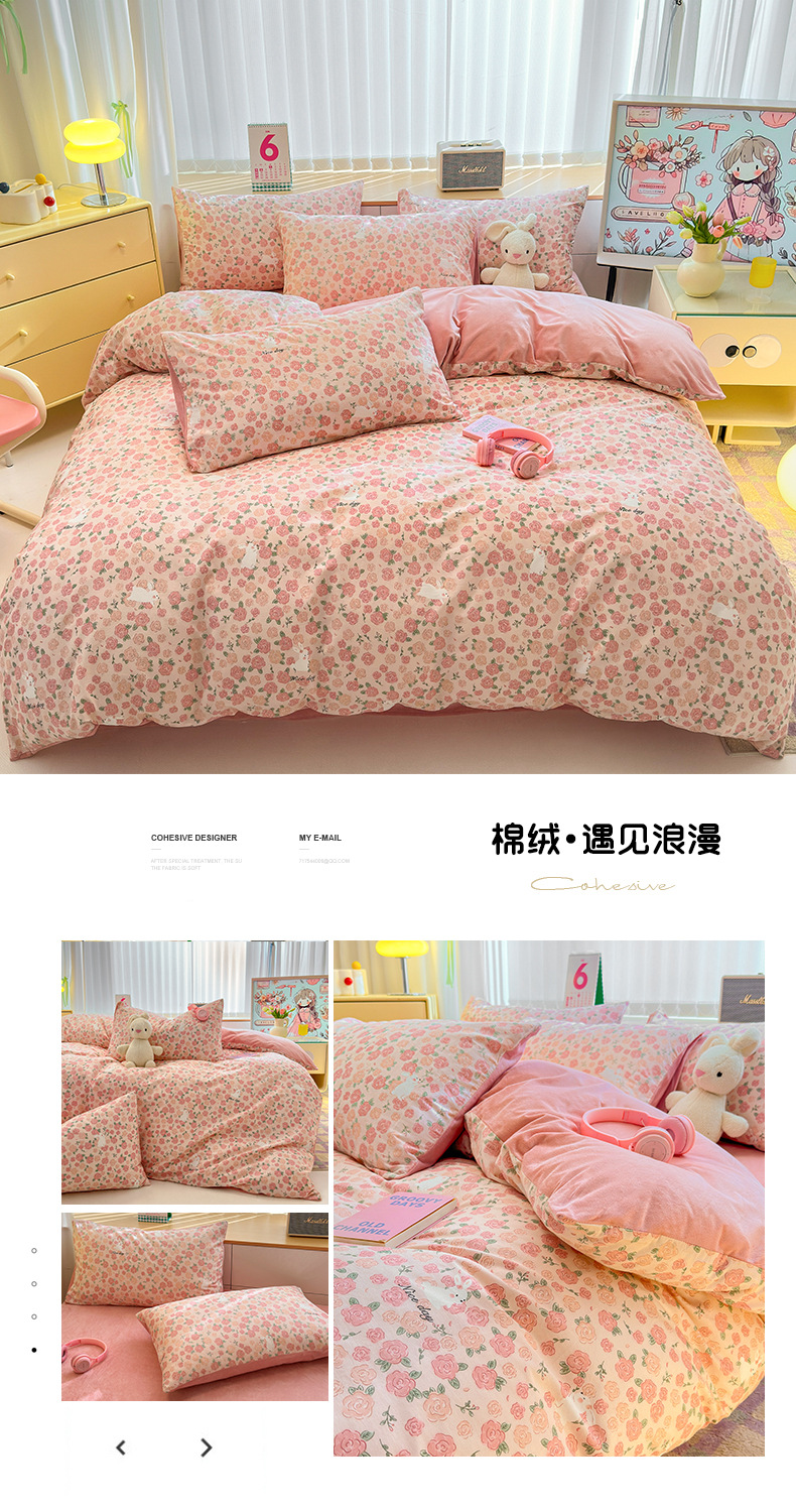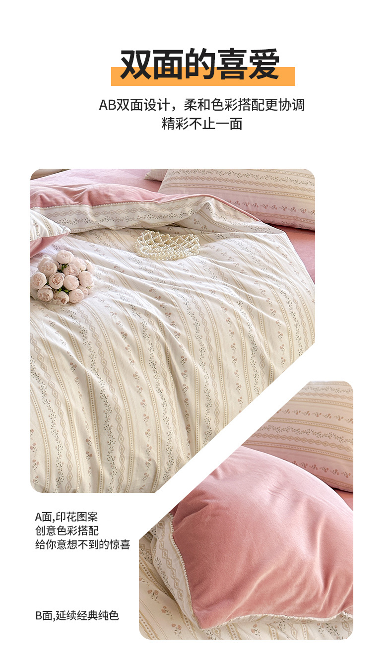 小清新ab面纯棉牛奶绒四件套少女心秋冬加绒三件套法兰绒被套床笠