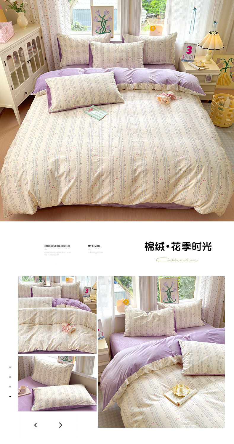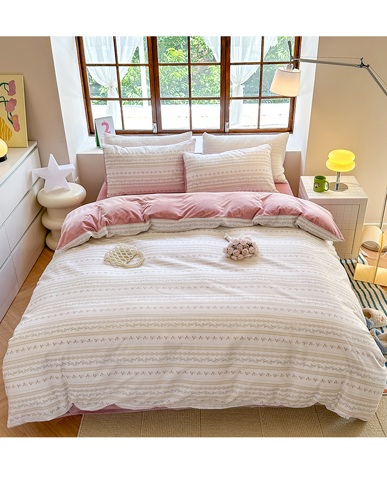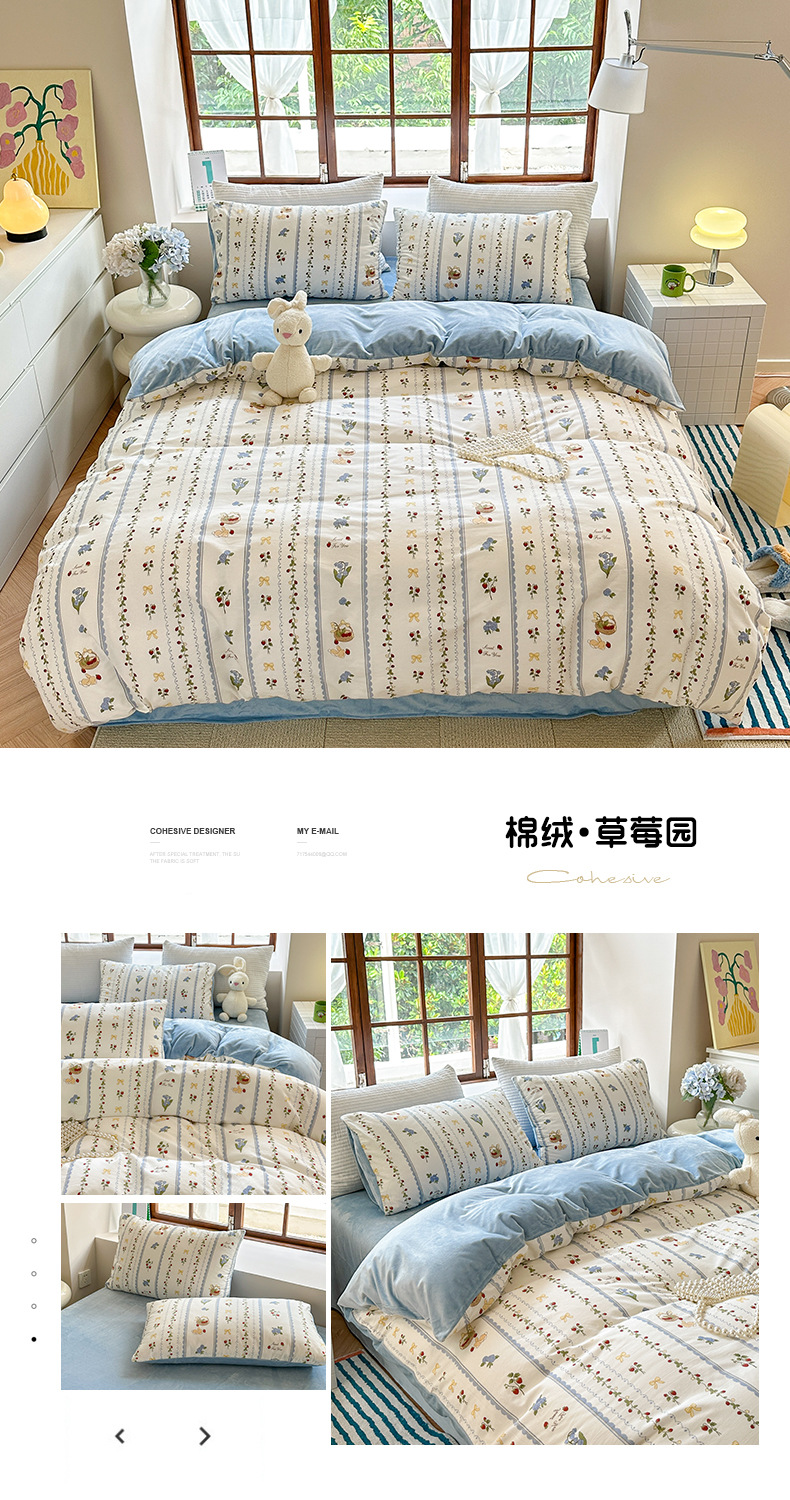 小清新ab面纯棉牛奶绒四件套少女心秋冬加绒三件套法兰绒被套床笠