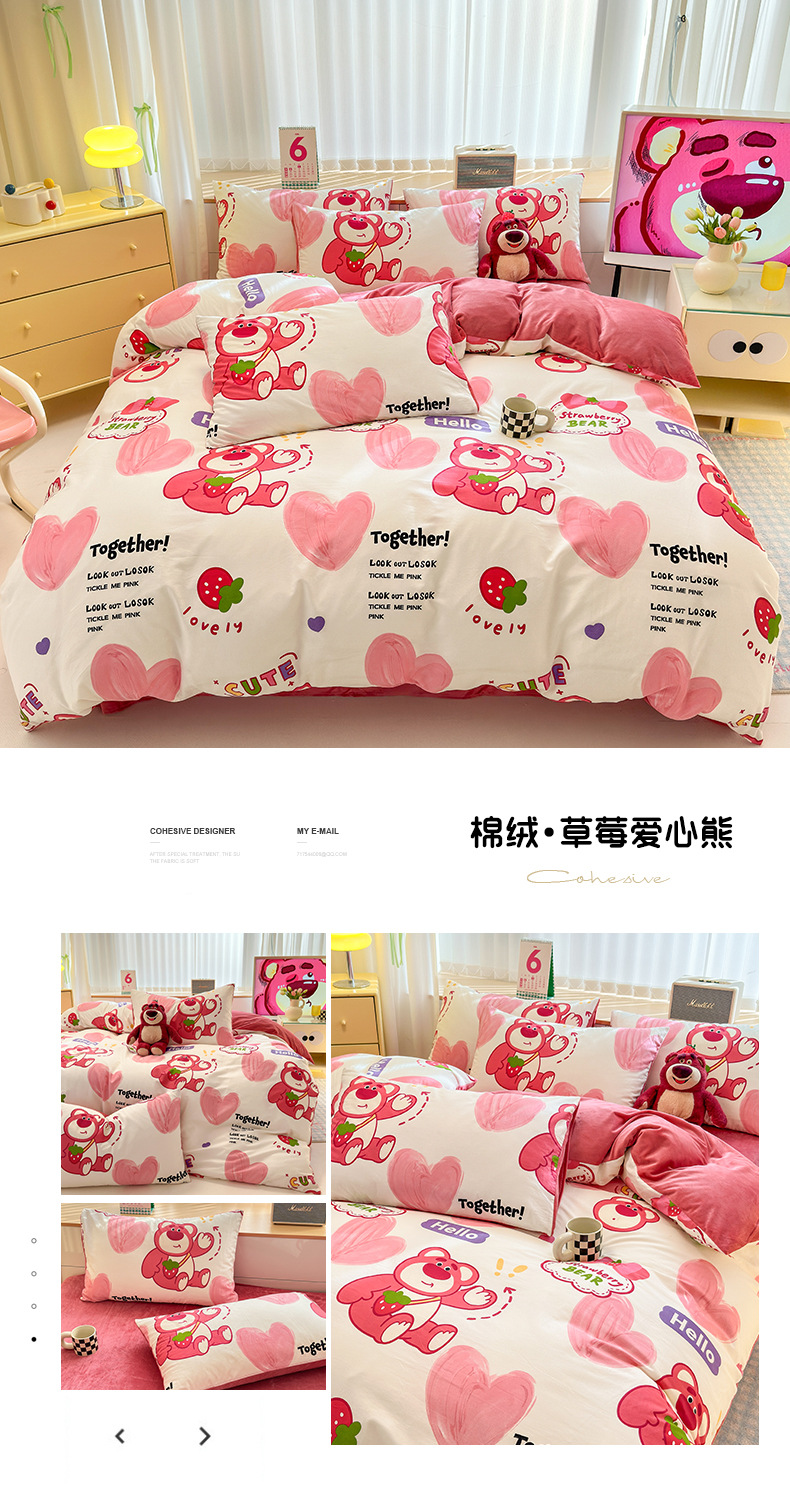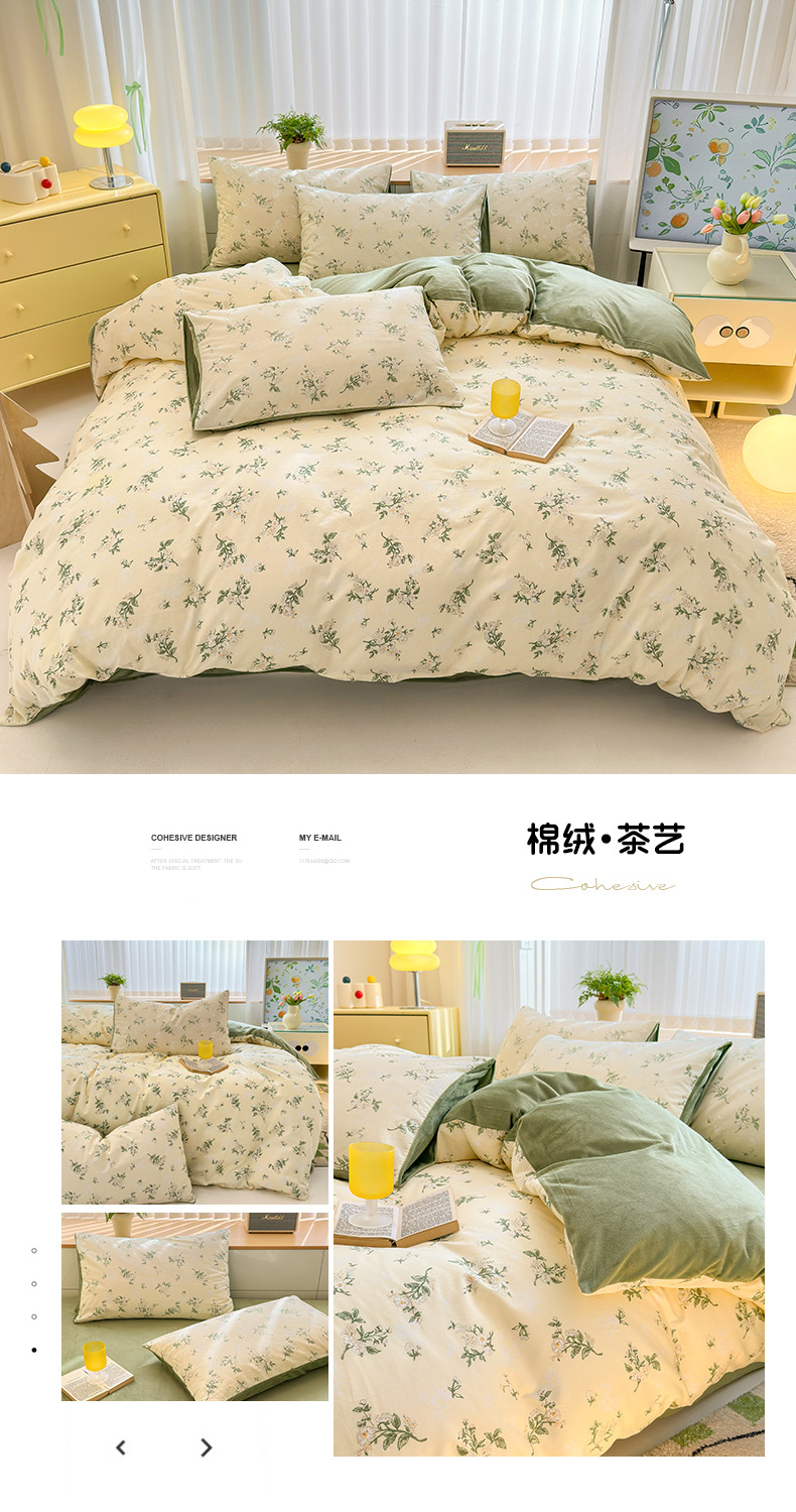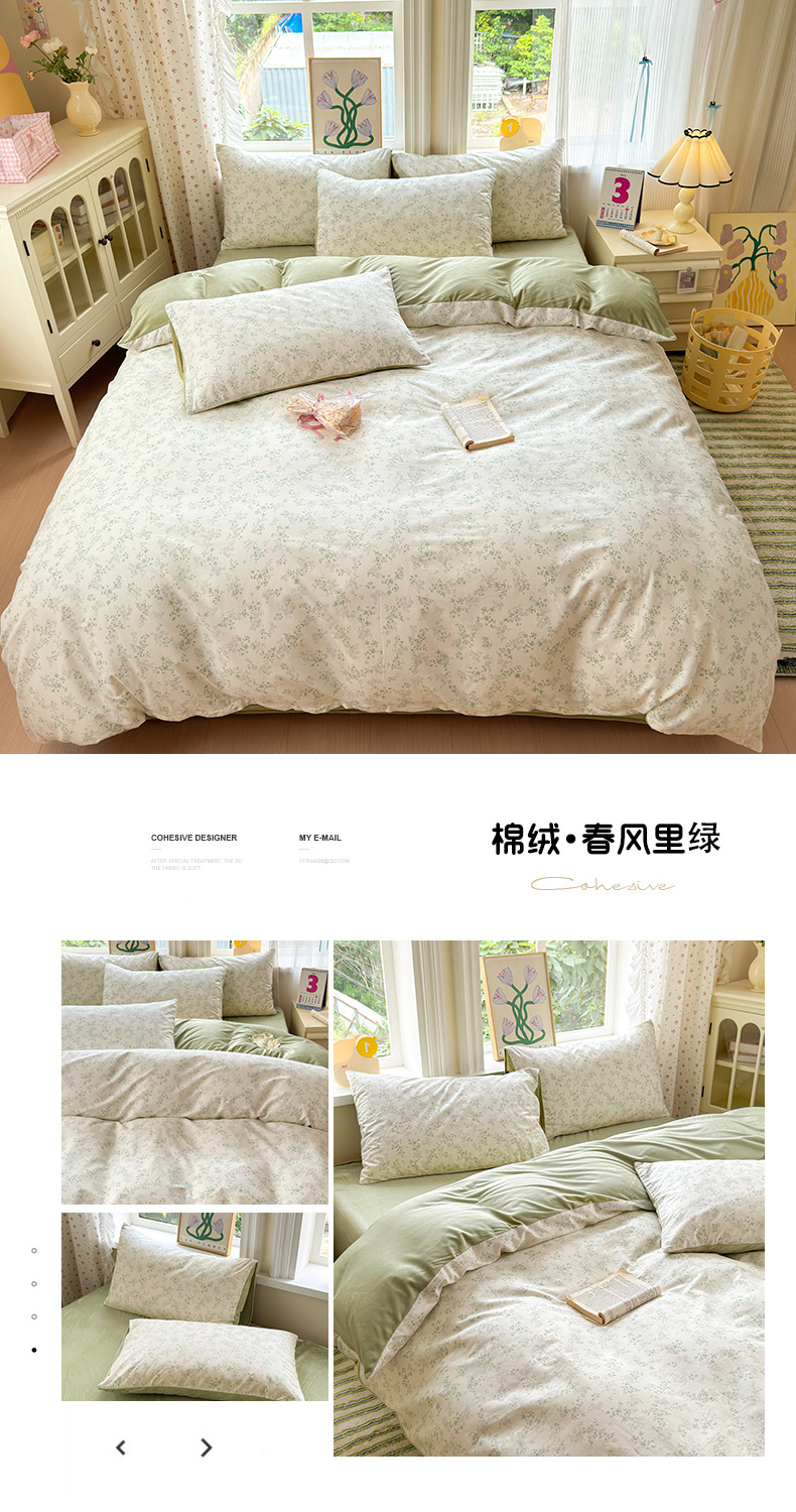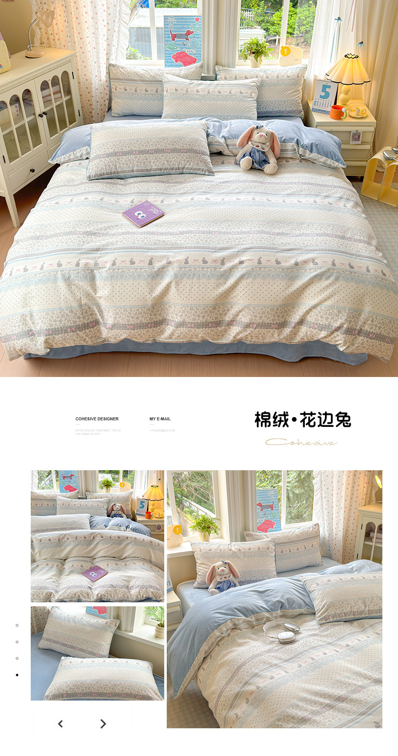 小清新ab面纯棉牛奶绒四件套少女心秋冬加绒三件套法兰绒被套床笠