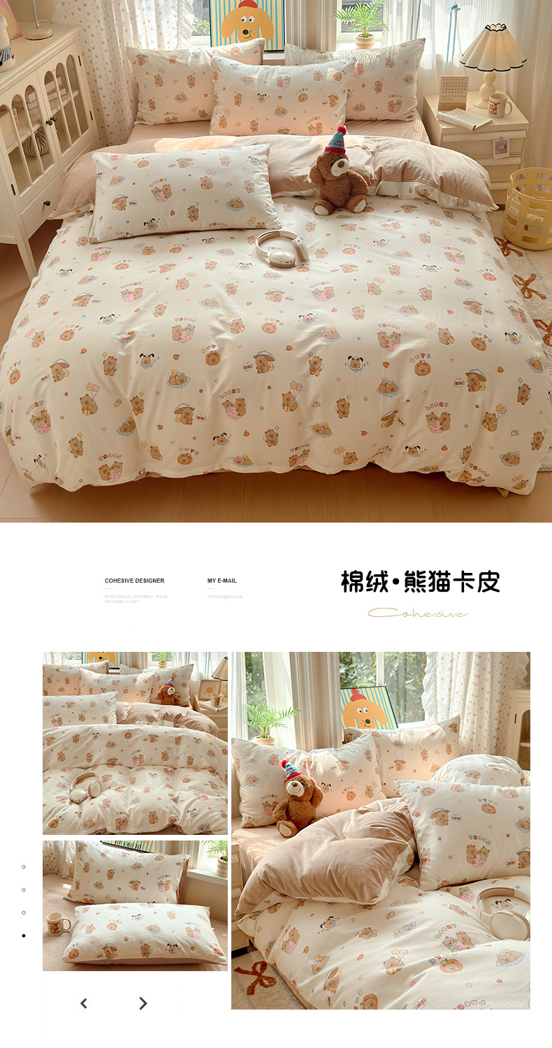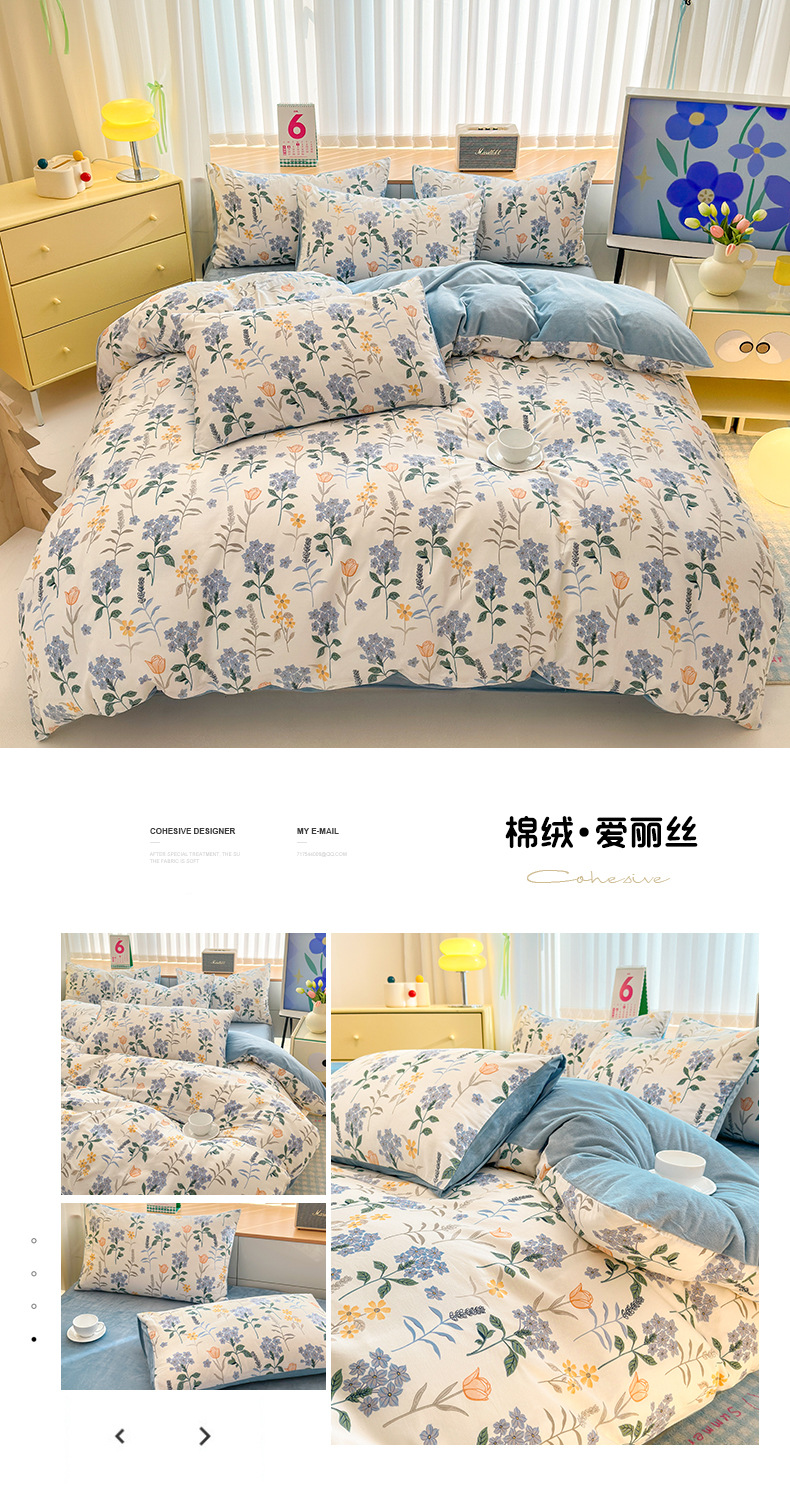 ab面全棉牛奶绒四件套冬季珊瑚法兰绒加厚被套被罩学生宿舍三件套